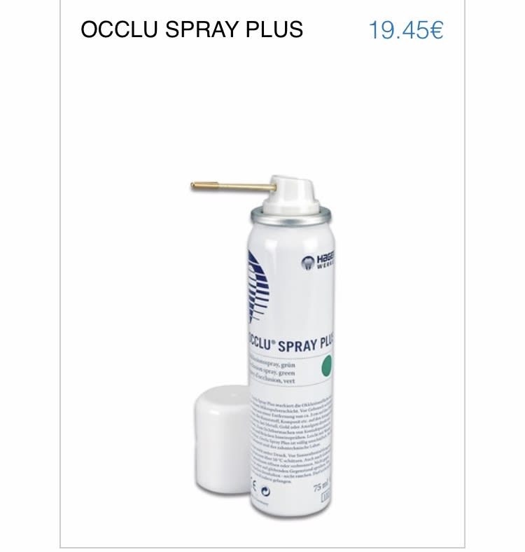 Juste une remarque : vous avez des sprays d’occlusion à 18 euros. Spray d’occlusion qui sont 3 fois moins cher que le Nati spray Cerec sur Mégadental (56 euros) et 7 fois moins cher que que le Natispray Cerec sur Henri schein (plus de 130 euros).