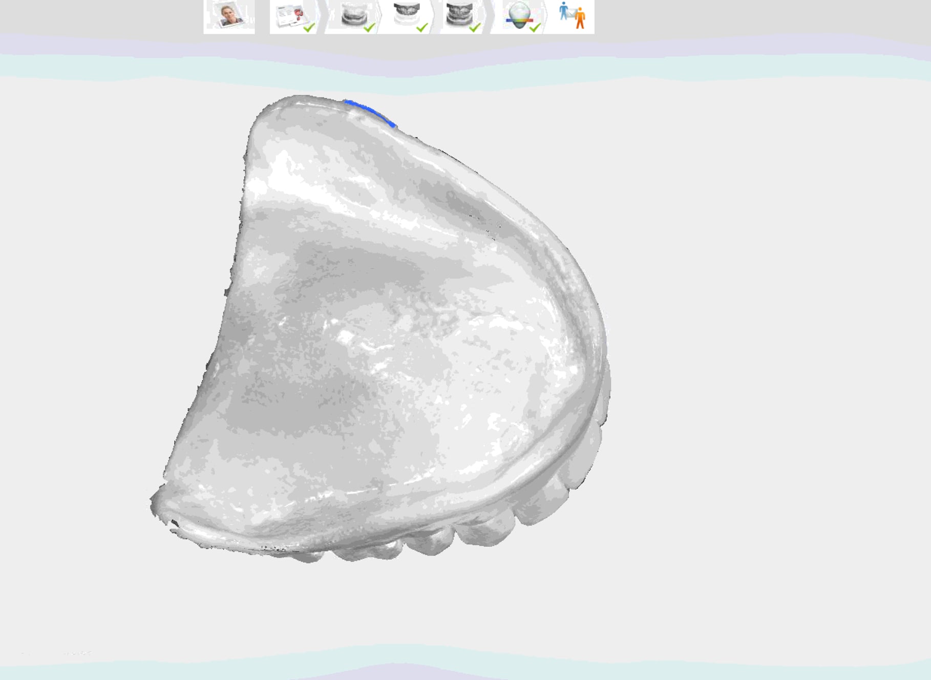 J'ai voulu faire une empreinte globale. Lorsque j'ai fait le bas, et que j'ai terminé l'empreinte par la face vestibulaire des incisives, et bah la, cela ne correspondait par pile poil... il y avait comme une incisive par dessus un précédent enregistrement de la zone, genre décalage de peut être 1 mm... c'est beaucoup.... J'ai malheureusement effacé la zone, réenregistré sans prendre de photo d'écran pour pouvoir vous montrer. De même, lors de l'enregistrement de la RIM, l'occlusion était correcte du côté de l'enregistrement, mais faux côté opposé... L'empreinte semble déformée... Ca me fait un peu peur. Alors certes je débute, certes le cobaye est jeune, certes je n'ai certainement pas écarté suffisamment les lèvres et la langue, ce qui m'a obligé à effacer pas mal de zones merdiques avec des bouts de je ne sais trop quoi collés aux dents, et donc réenregistré toute ces zones, donc l'empreinte n'a pas été faite de manière fluide, donc ceci explique très certainement cela, mais quand même... (je trouve que cette phrase a beaucoup trop de certes et de donc).