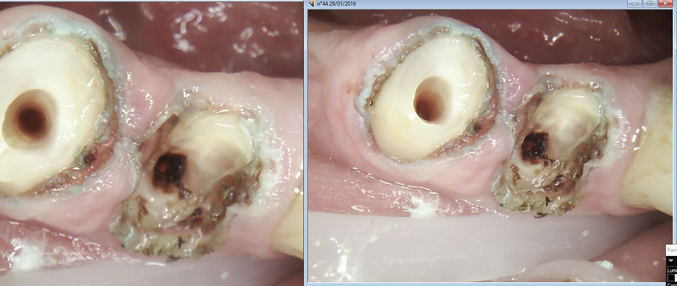 Je dis que cette 4 n'a pas à nous (la société)coûter 150 € , rien d'autre ... la cause : evidemment le patient qui n'a pas fait ce qu'il faut ( les raisons sont multiples : peur ?, financière ?, négligence ? ) mais aussi le praticien qui va la couronner alors qu'il est évident que ça va foirer , le problème est que ce n'est pas sur le moment ,donc ça permet de se dédouaner . Mais qui va y gagner dans l'histoire ? Pas toi Hokusai , ni moi ,ni ton voisin de pallier qui paye ses cotisations ,peut-être le vendeur de camera .....? à moins que . C'est un peu comme si un chirurgien orthopédiste collait une prothèse de hanche à un mec dans le comas , bah oui ça lui coûte rien et sa hanche est foutue .