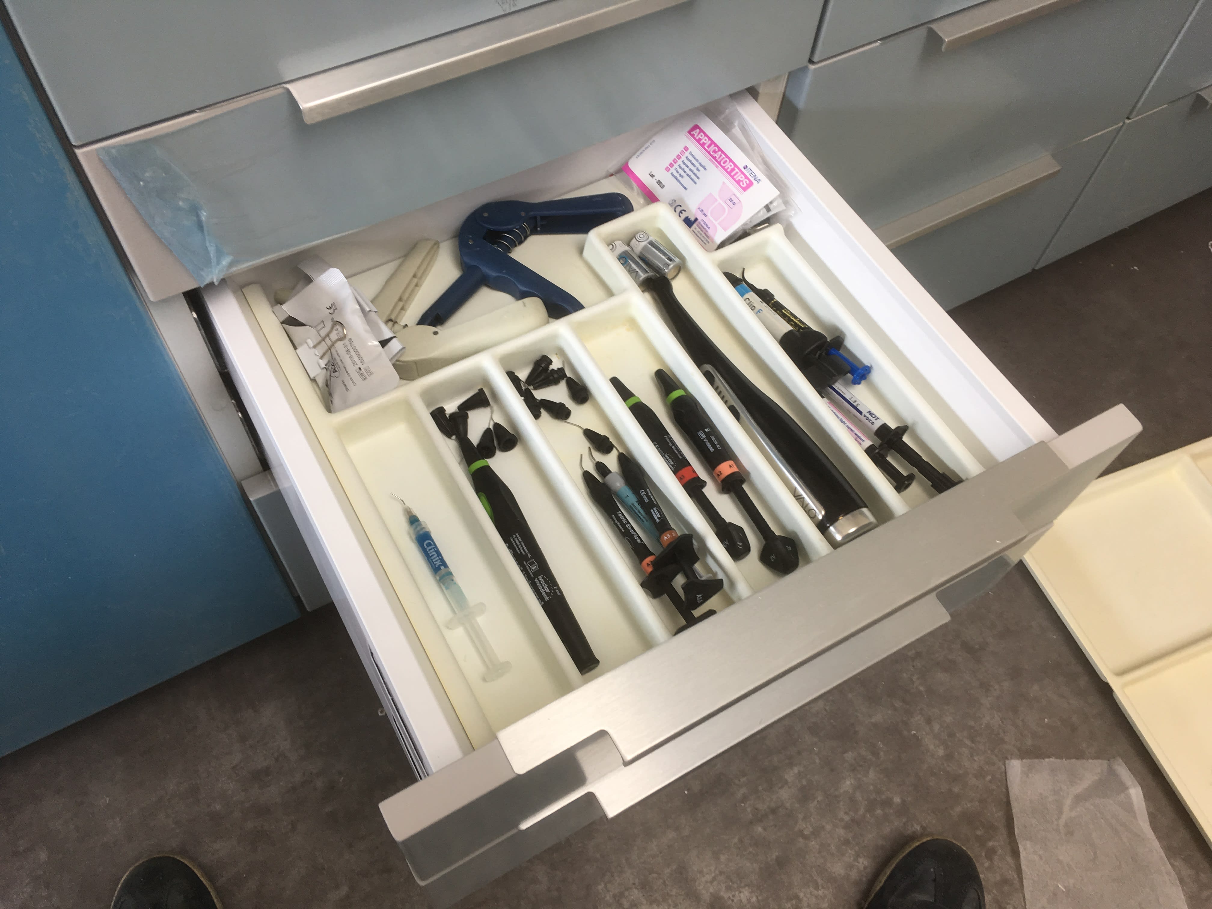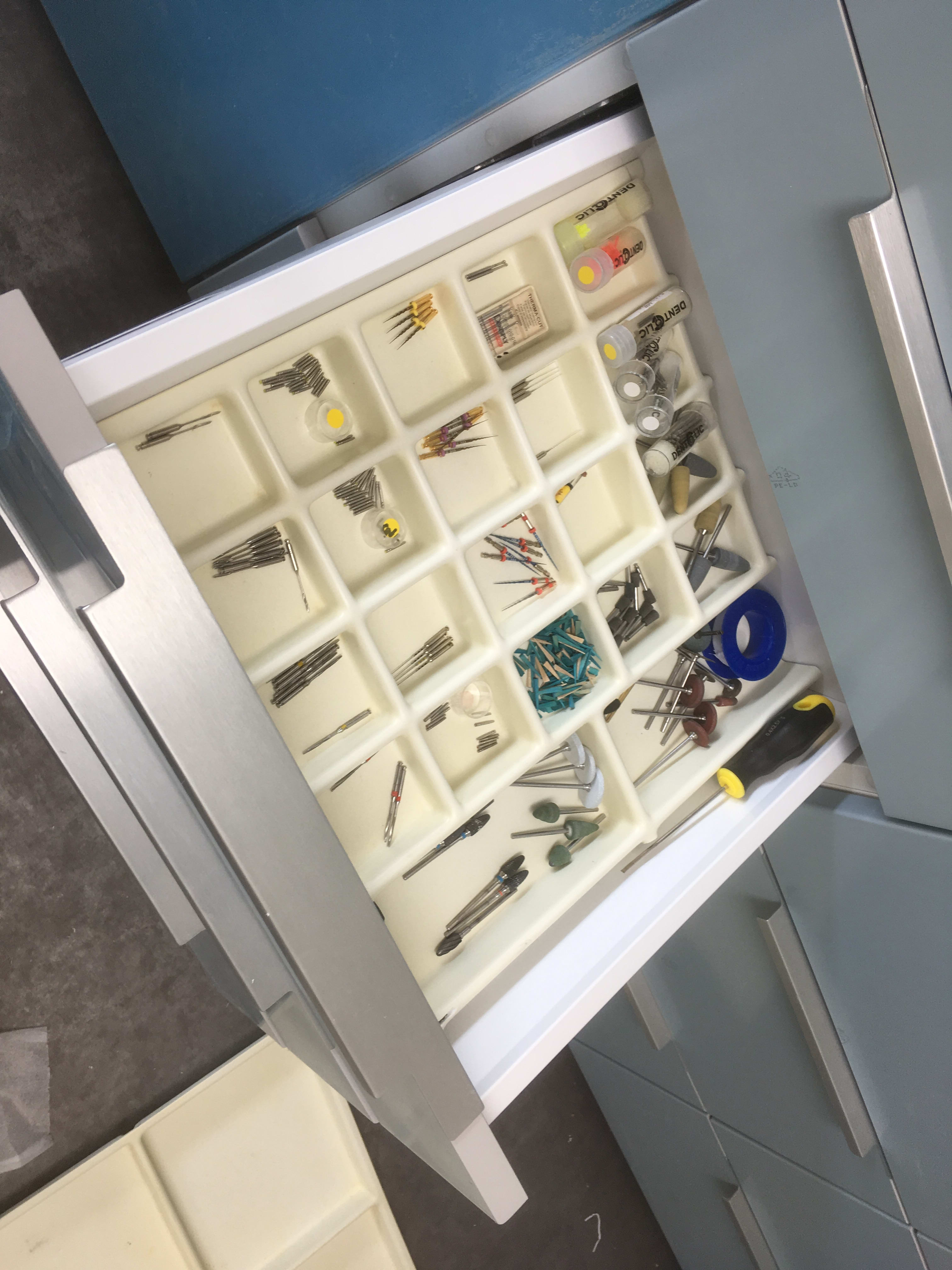 Dans un tiroir de 40* je mets par exemple tout pour faire des ancrages radiculaires... du coup pour faire une RF/sc33 faut ouvrir le tiroir compo de 60 + le tiroir ancrage de 40... qui vient compléter le tiroir compo.