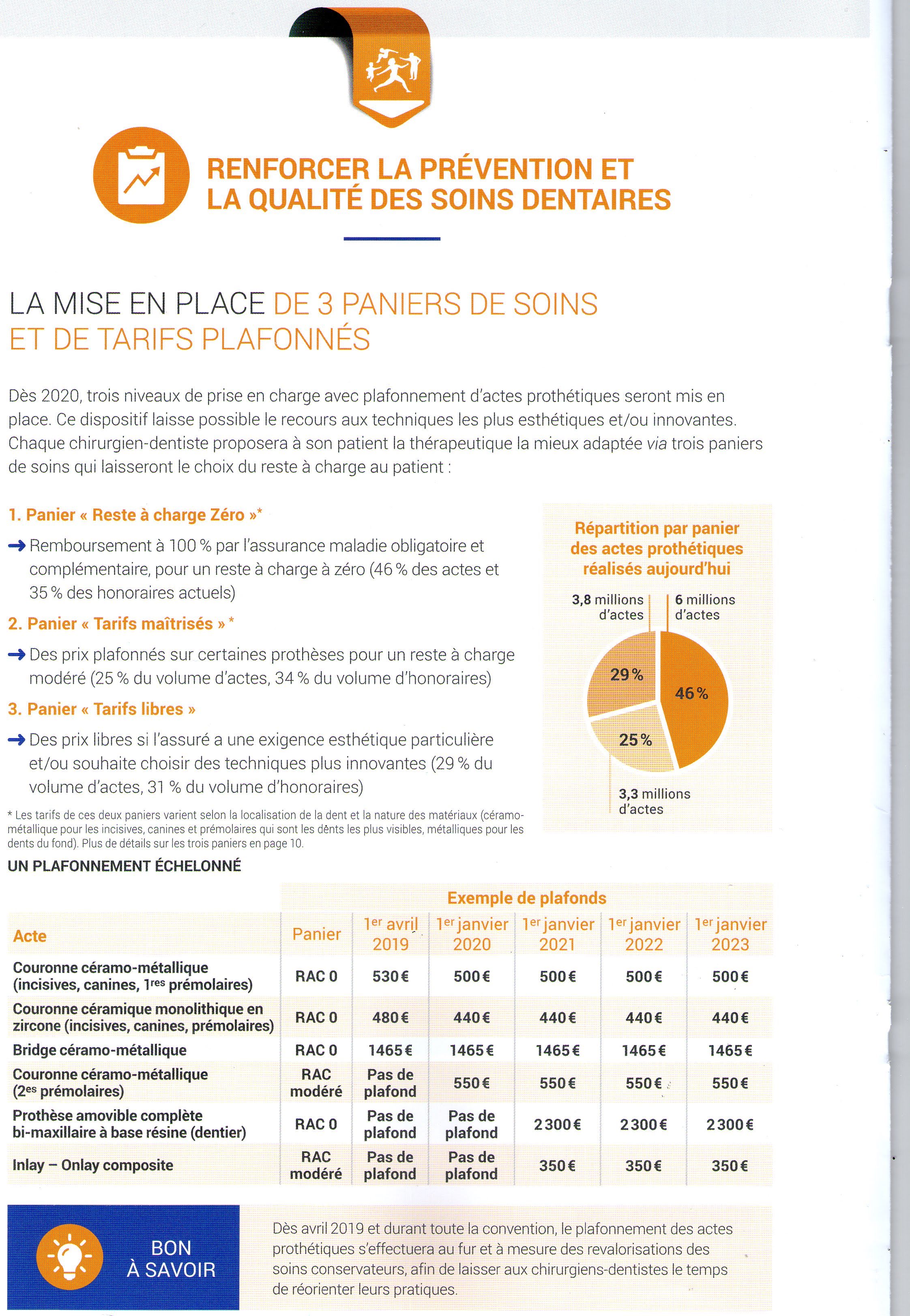 Pour le 1er Avril, c'est la mise en place des plafonnements sur les prothèses normalement et différents soins qui vont évoluer.