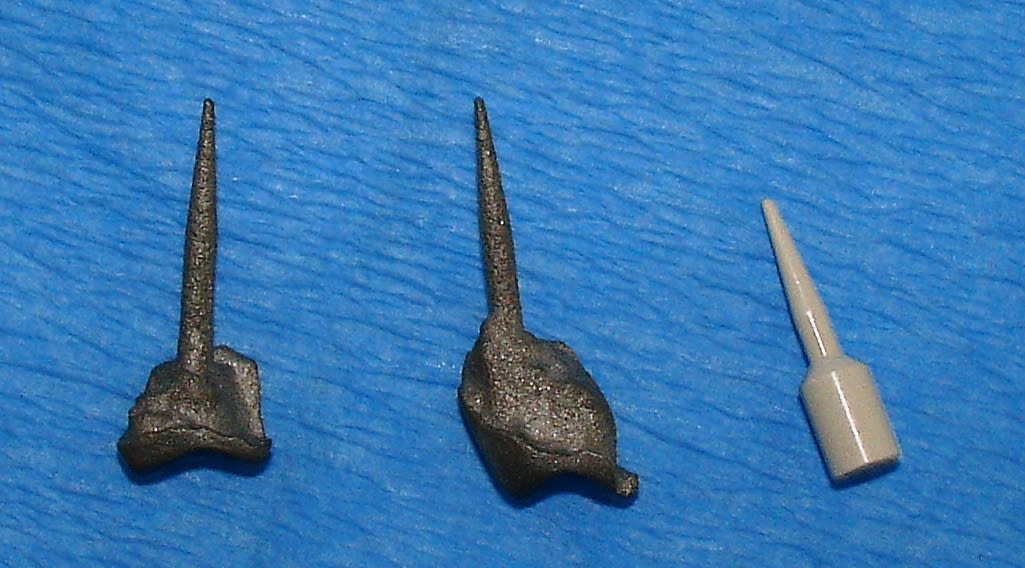 > empreintes, des bulles à la coulée des modèles, des morceaux de plâtre pétés au