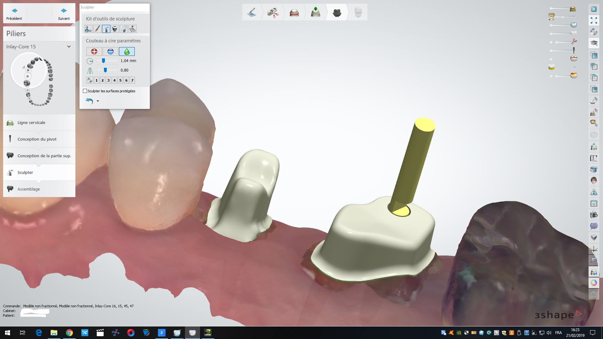 > peut pas comme avec le software medit, couper la zone préparé sur le modèle