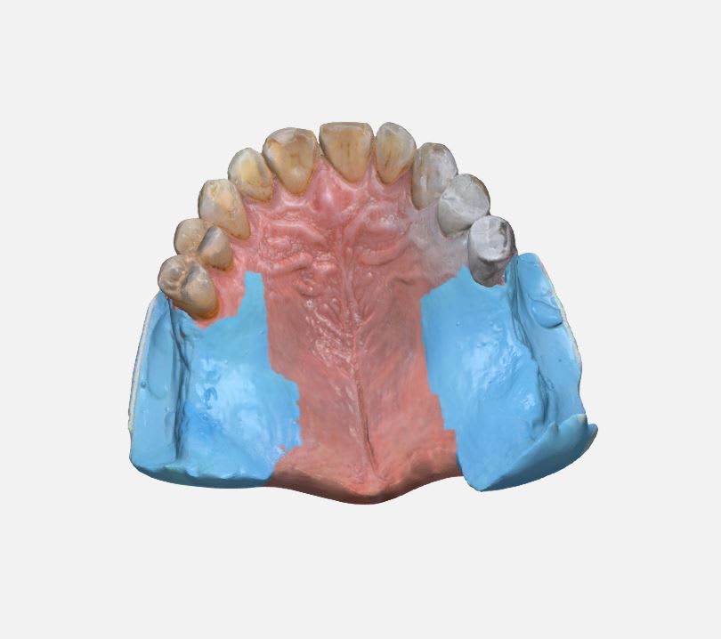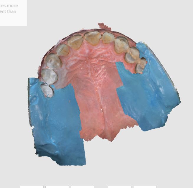 Il est impossible de faire une empreinte de scan post implant séparément si cote à cote. En fait tout va bien au premier mais en déplaçant le scan post vers un nouveau spot le fait de sanner le deuxième annule le premier; c'est une galère et au final il y a tellement de trou que le protho ne peut pas exploiter.