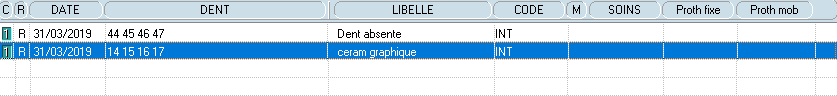 Moi j’ai un acte dent manquante. Dans code graphique, tu n’as pas dent absente, ( je ne suis pas au cabinet)?