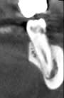 La zone radioclaire ressemble plus à un kyste qu'au canal dentaire. Il semble y avoir une rhysalyse apicale.