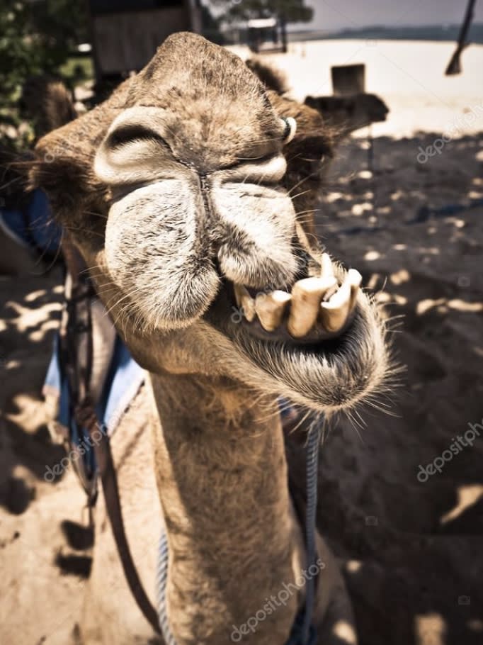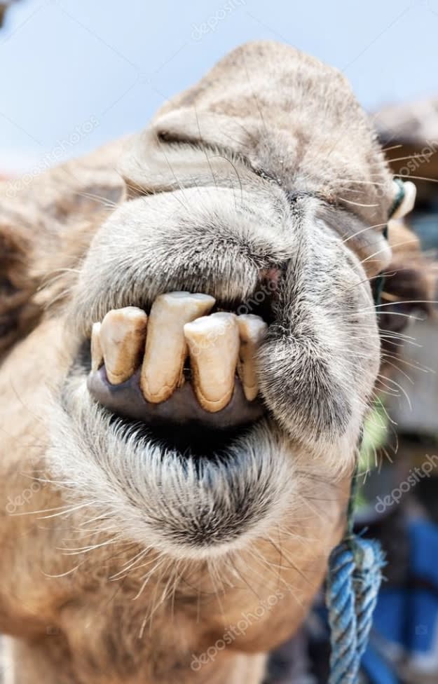 Et ben il y a une autre espèce complètement dégénérée avec des problèmes d’alignement : ce sont le dromadaire ou le chameau. Leurs incisives partent souvent en sucette. Leur PM et molaires sont loins du secteur antérieur. Ils peuvent te bouffer n’importe quoi , y compris du cactus. Ils ont un épithélium kératinisé épais , donc pas de blessure. Et quand ils sont en rut , ils sortent une partie du palais. On pourrait croire que c’est la langue, en fait pas du tout c’est la partie mobile du voile du palais : la doula