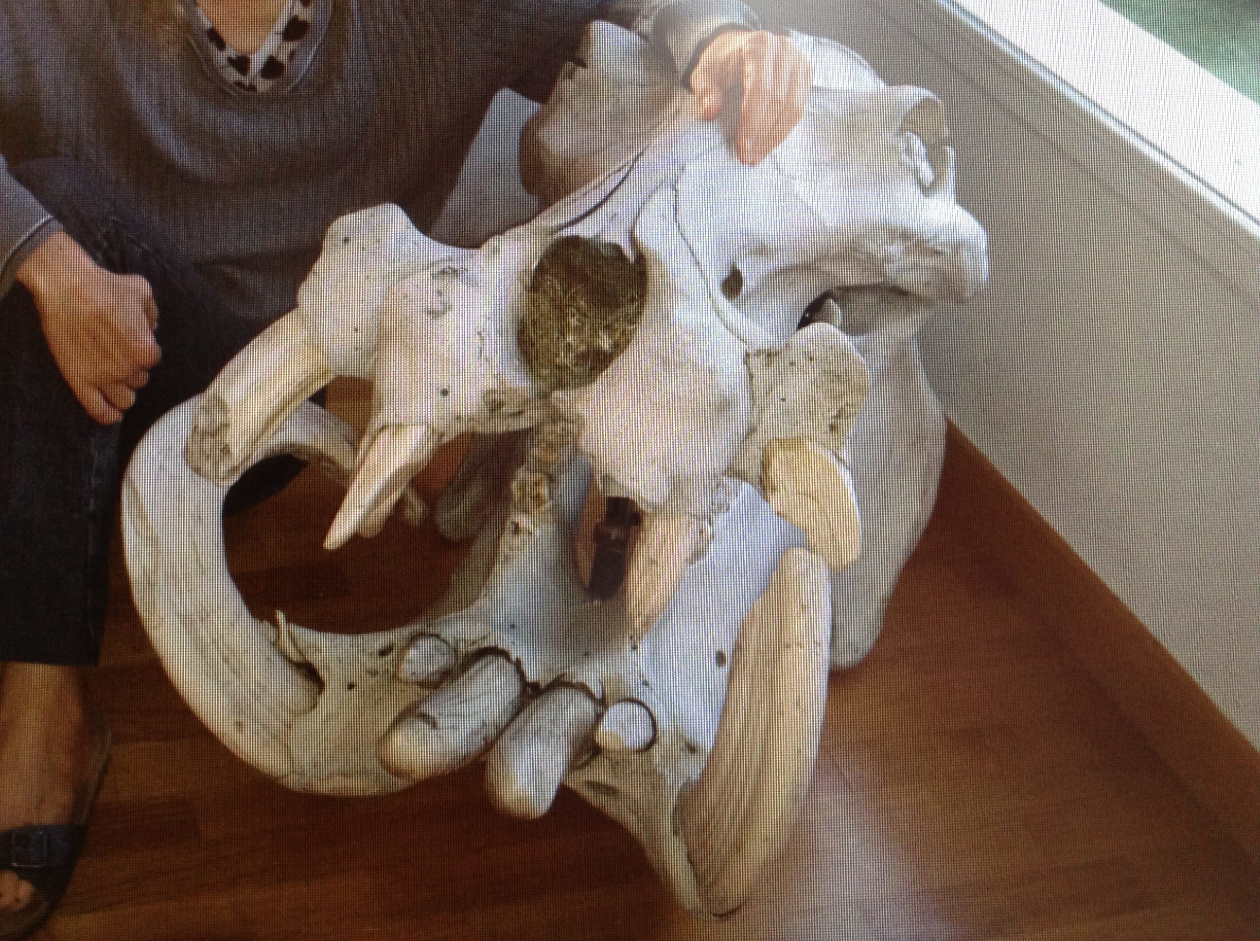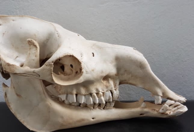 Une magnifique mâchoire d'hippopotame qu'on a prenommé Gloria par rapport au dessin animé Madagascar.