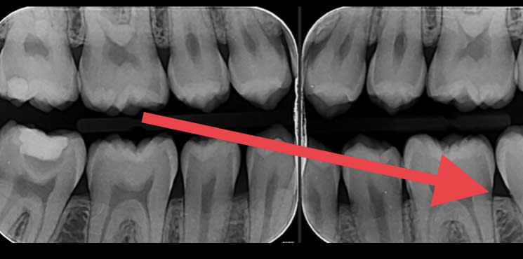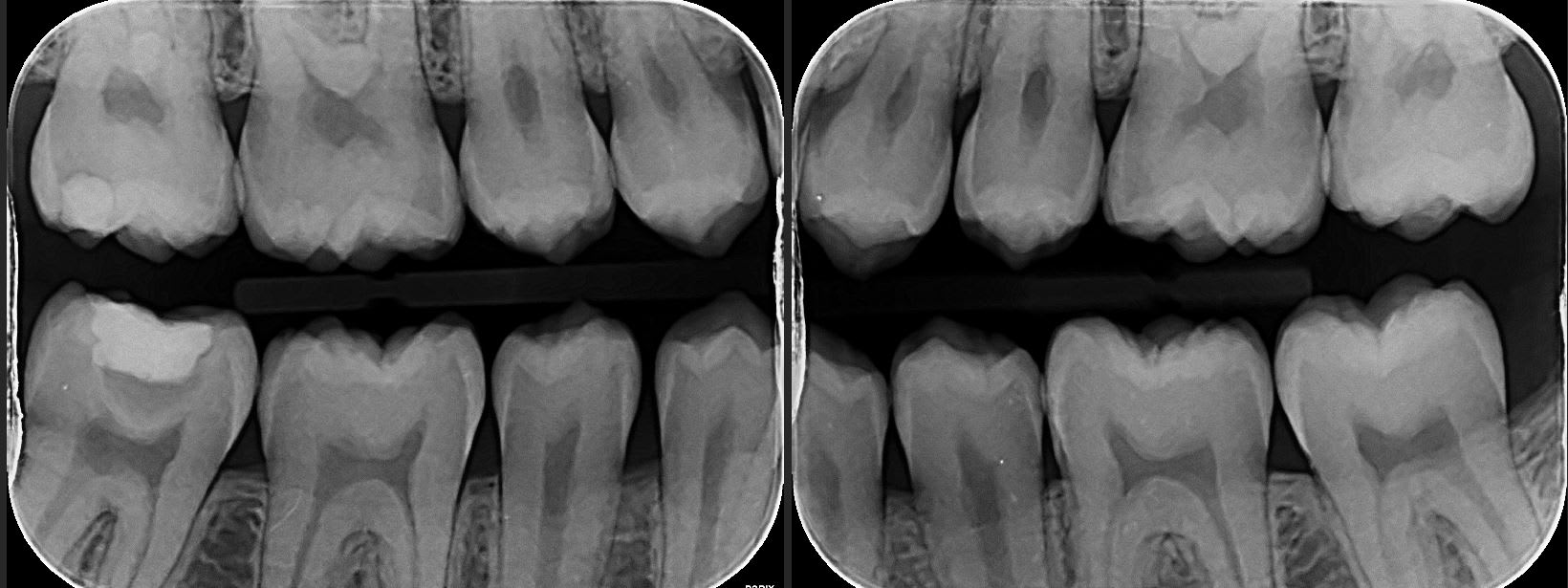 Le mec a certainement mis de la biodentine sur la 47 . Si la restauration supérieure n’est pas infiltrée, je ne vois pas pourquoi on s’amuserait à dépulper une dent asymptomatique