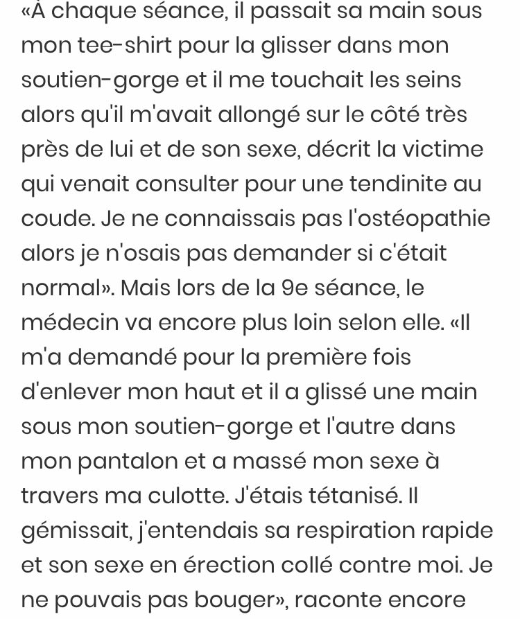 Si vous vous amusez à taper « agressions sexuelles par un médecin » sur Google, vous verrez l’ampleur du phénomène. Hallucinant :)