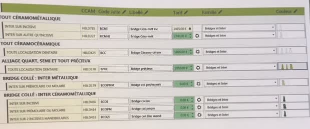 Mais il n'y a pas de libellés équivalents au niveau des bridges : que céramo-métalliques ou céramo-céramique