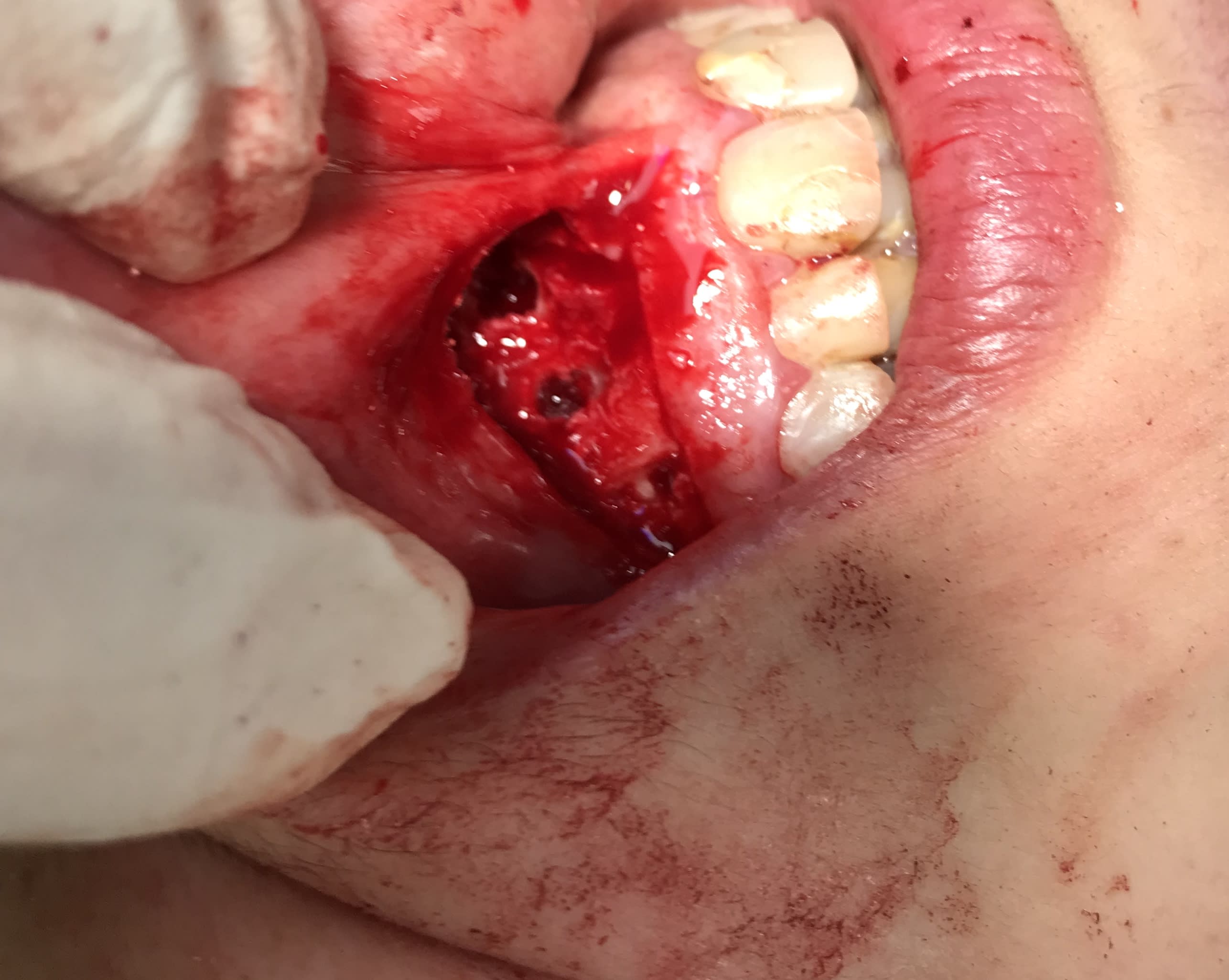 Si il y a communication vestibulo-palatine ou absence complète des corticales osseuses sous tes dents, tout ce que tu vas faire risque encore d'aggraver la situation, donc aller simple chez un CMF qui possède les techniques de greffe osseuses complexe.