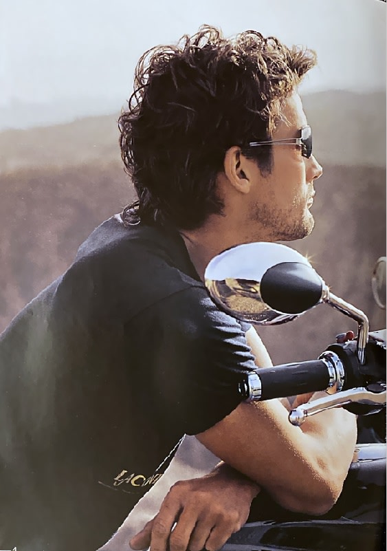 Le beau gosse sur sa moto, dans l'Ouest Américain et à poil dans l'abreuvoir !