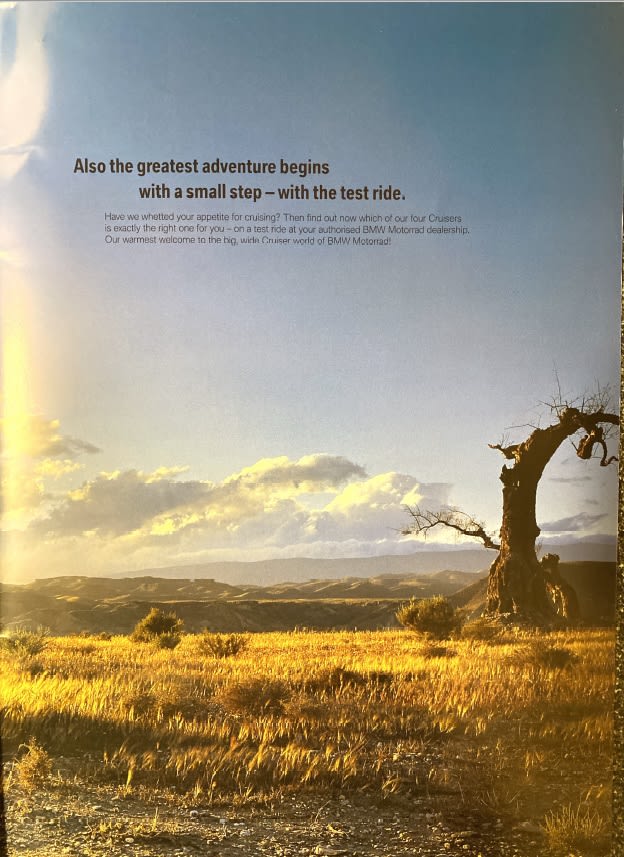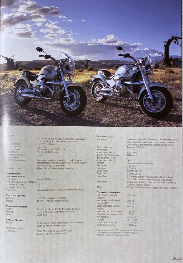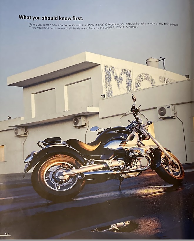 Je suis retombé sur le prospectus de ma fabuleuse ( de fabula, la Légende) BMW R 1200C MONTAUK. Ca remonte à 2004.