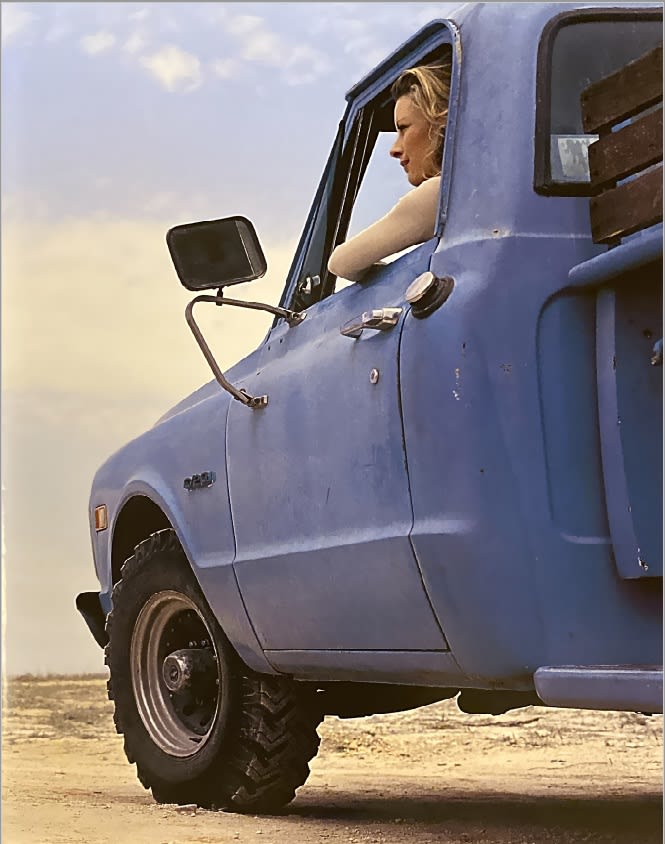 La jolie (?) blonde dans son pick-up et dans son ranch.