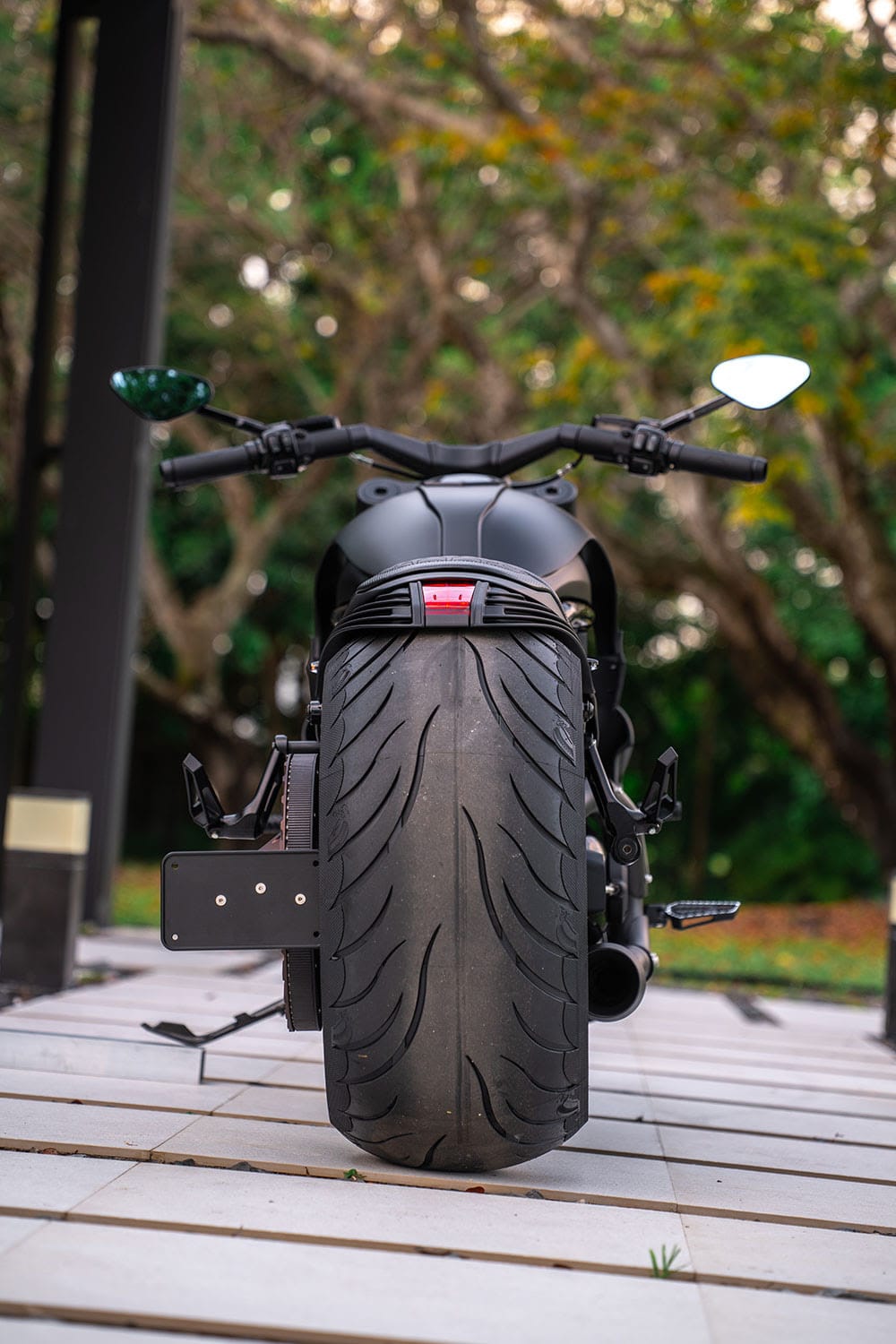 Finalement ils on réussi à adapter un gros pneu sur la R 18. il doit falloir démonter la transmission pour installer ou changer le pneu...