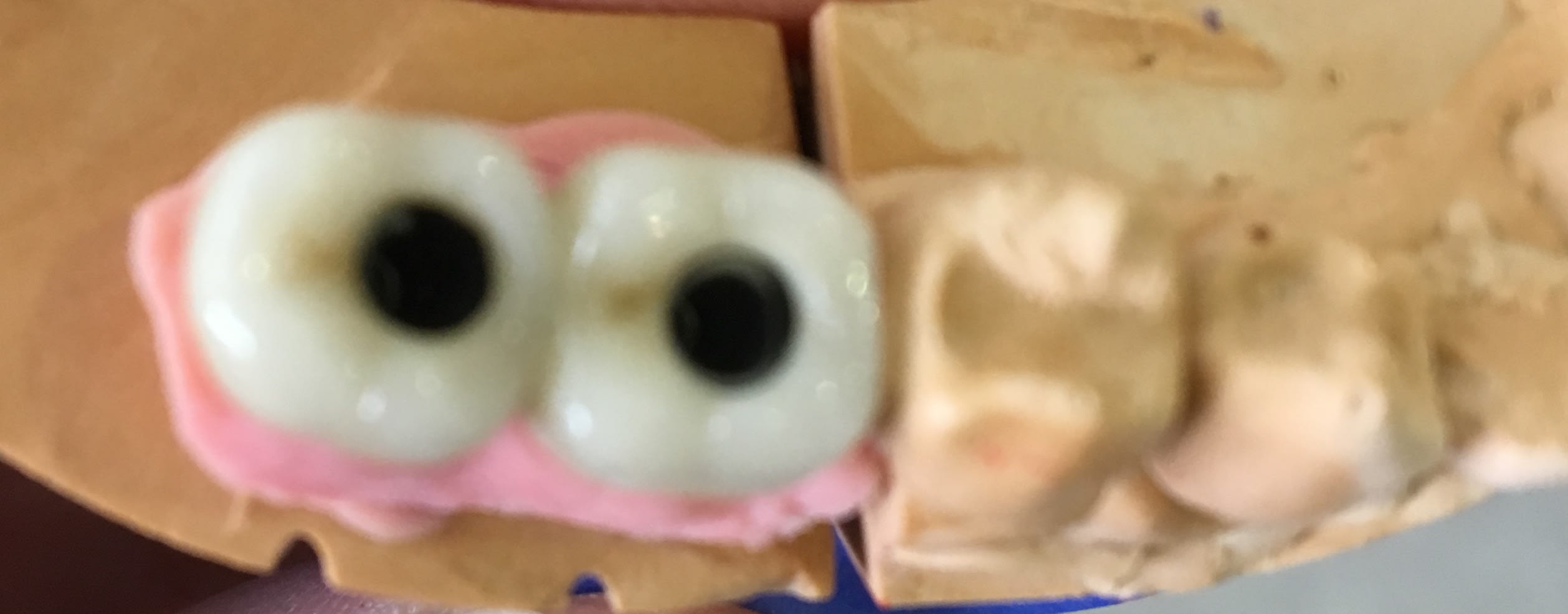 Dans le cas présent, je veux bien me les couper si ça rentre sur le patient. D’autant plus qu’il n’y a pas à prendre en compte que l’axe des implants qui ici ne sont pas parallèles , il y a aussi le point de contact avec la dent naturelle à prendre en compte.