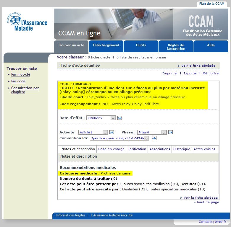 >Par ici, l'inlay est considéré comme une prothèse donc coefficient multiplicateur sur la base sécu.