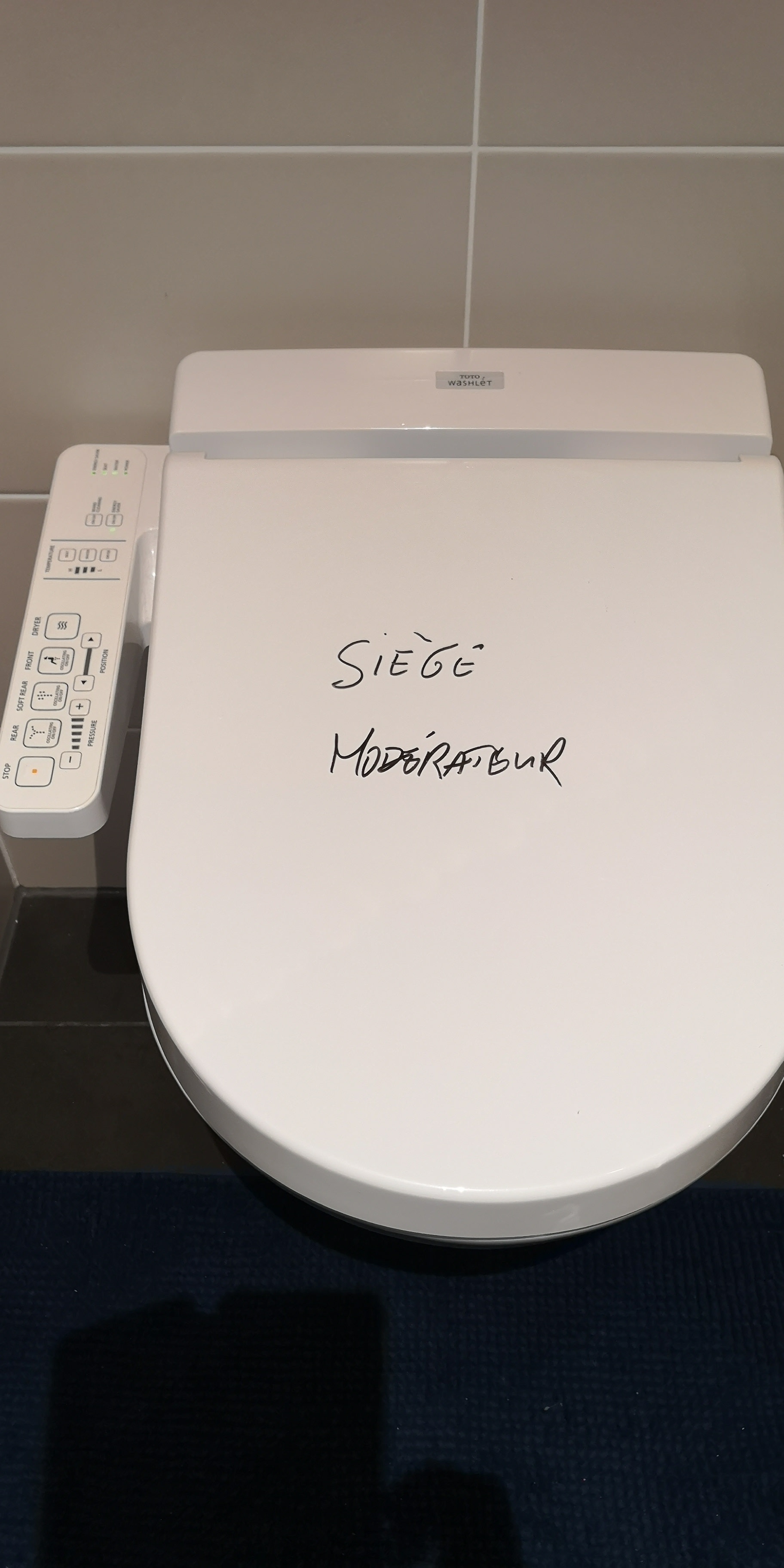 Ah tiens, y a le modo qui se fait chier, sur des chiottes high tech de modo mais quand même.