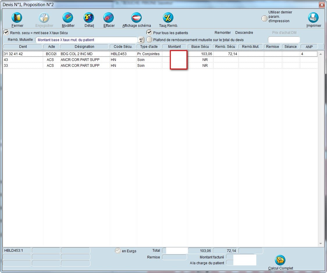 Effectivement mon acte HBLD453 était paramétré pour 3 dents et pas 4 donc là ça marche, je verrai pour 33 et 43.