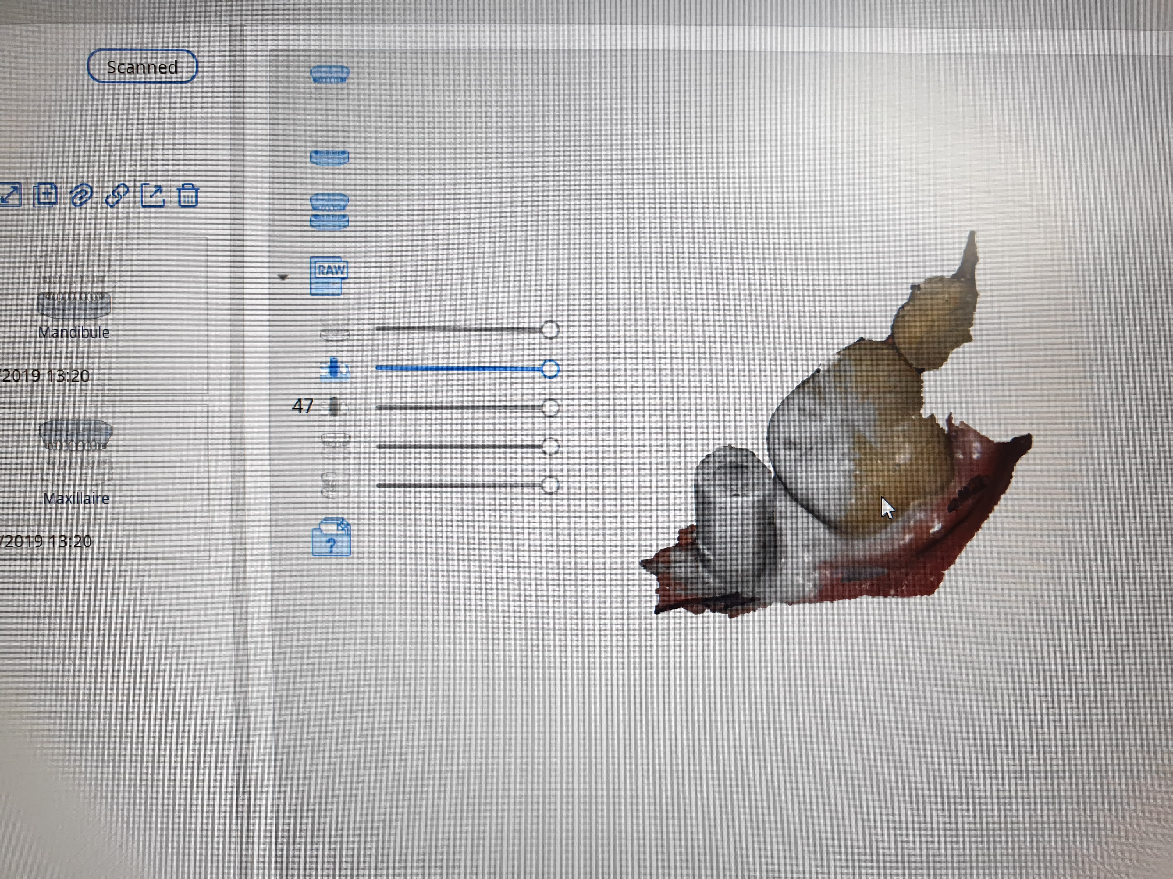 la vue que de l'enregistrement scanbody (avec la gomme pour peaufiner)