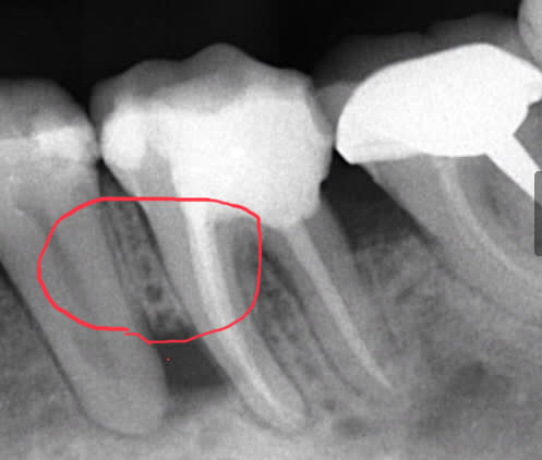 C’est le gros danger des intraligamentaires chez les fumeurs et aussi chez les diabétiques, nécrose osseuse due à un excès de vasoconstricteur sous pression.