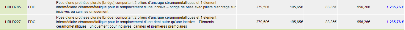 Pour un CMU ,un bridge céramo métal HBLD227 ,par exemple sur 45.46.47 (46 inter) est il en honoraires libres ?