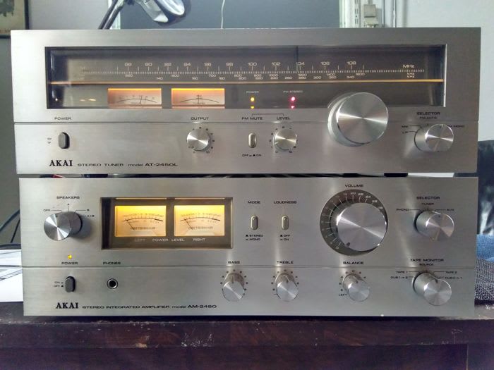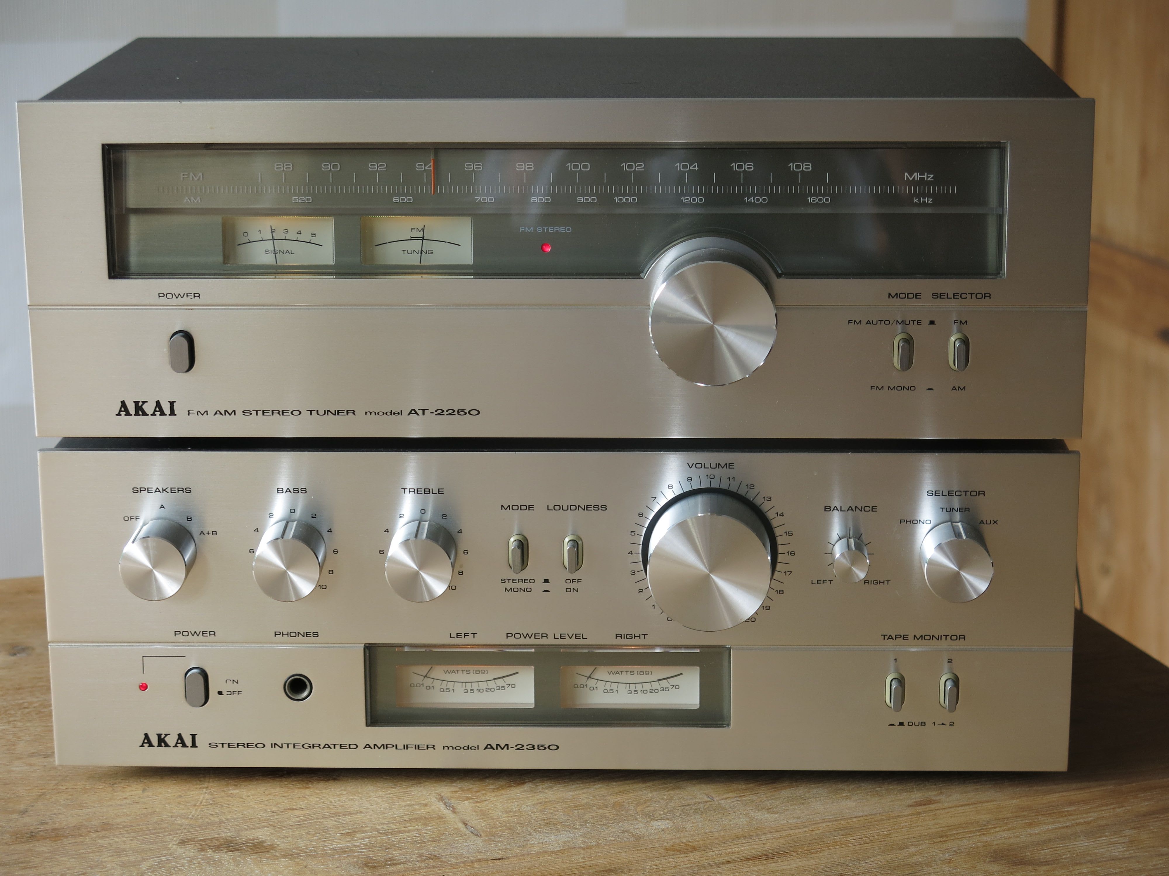puisqu' on est dans les tuners j ai retrouvé dans mon bordel un ensemble Akai ampli 2350 avec son tuner 2250 tout petit joli et aussi un ampli Akai 2450 un peu plus gros ,