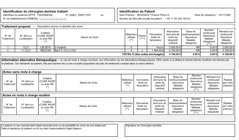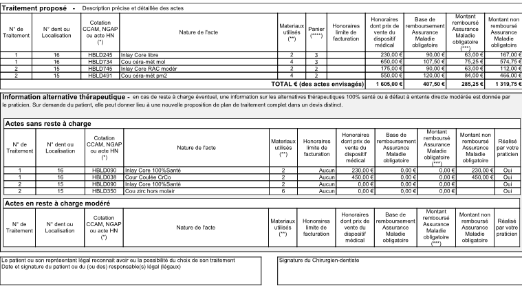 Surtout ce devis présente mal car dans la description de l'acte on ne sait pas à quoi ça correspond, peut être un mauvais paramétrage chicot ? (et on voit le nom de ton patient...)