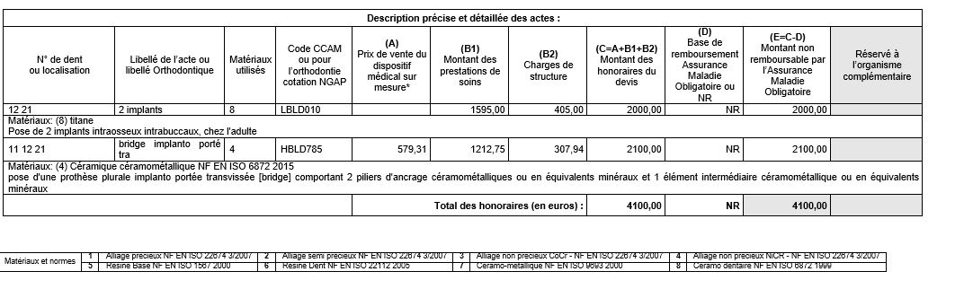Le probleme est que juju met dans le devis une limite tarifaire de 1485 euros a hbld785 pour ce bridge sur implant alors qu'il n'est pas concerné par le RAC0 . C'est un bug A signaler.