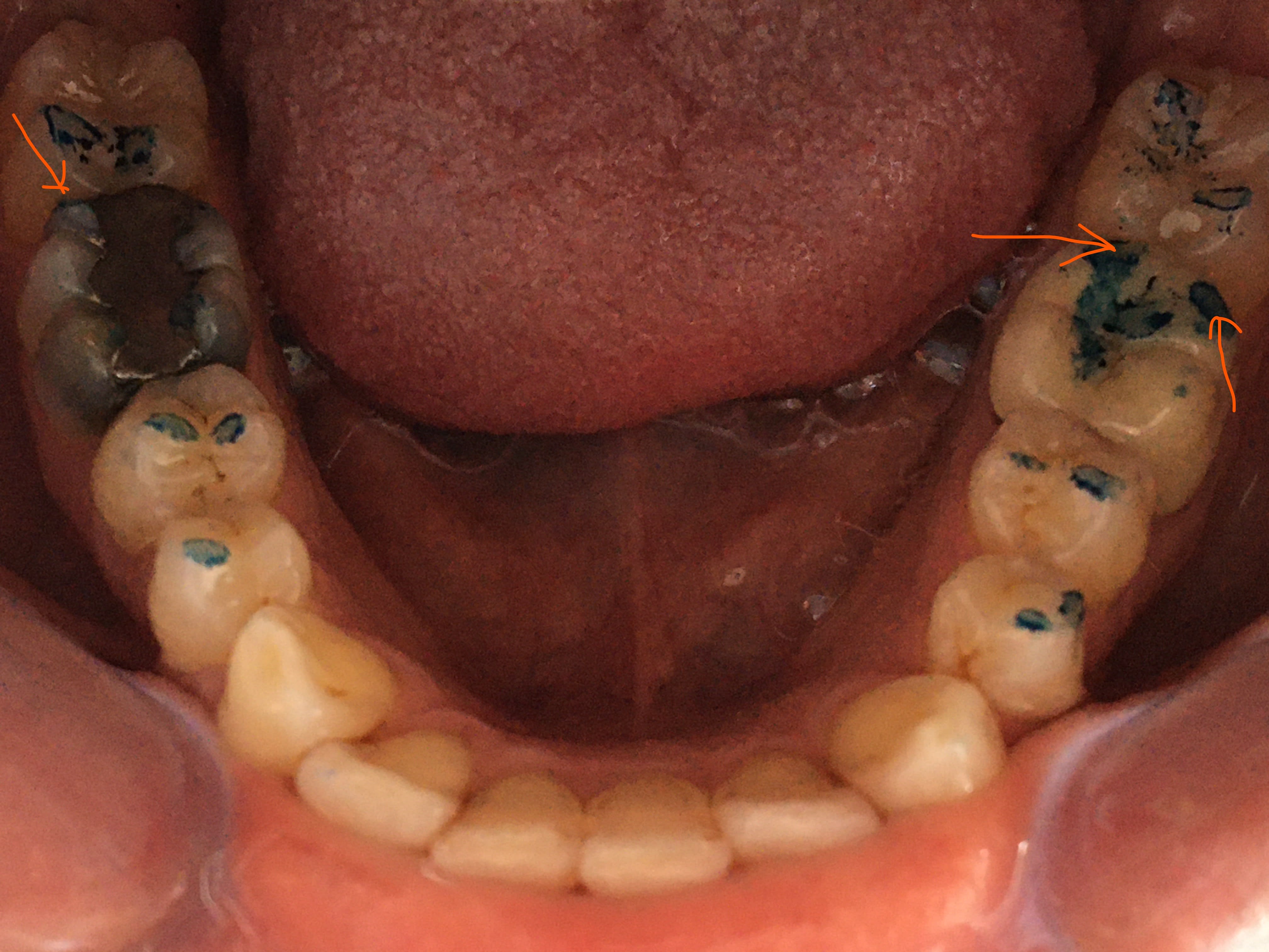 le top serait de faire monter le modele du bas avec la molaire couronnee montee sur die ou acutrak . comme ca tu peux les frotter avec et sans et tu vous la différence .