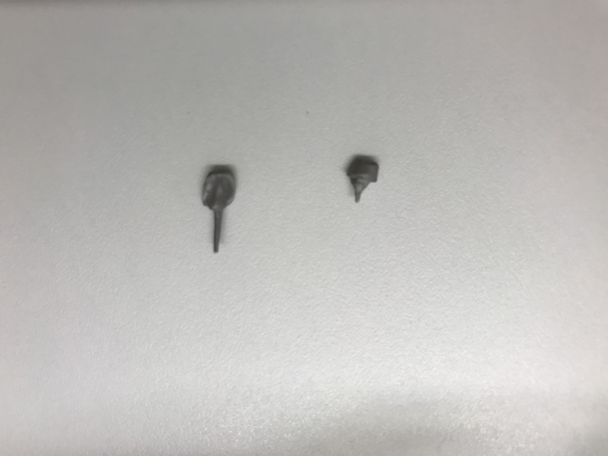 Exemple parmi tant d’autres : ici la même empreinte d’inlay core avec les mêmes infos données au prothésiste donnera chez un labo français un inlay core court et un inlay core de taille normale chez le labo chinois. (Voir photo). Pour le labo français ça pourra être un inlay core trop court , ou mal ajusté , ou un tenon de plus faible diamètre etc etc