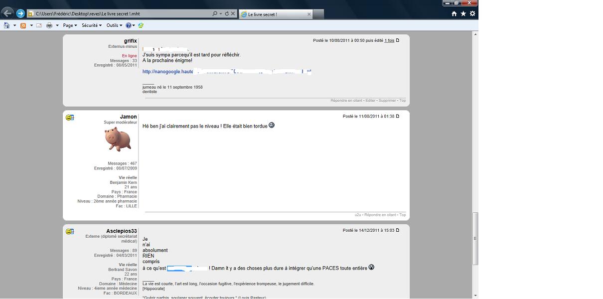 L'interet du fil est de dire qu'il est dejà inscrit qq part dans ce livre.