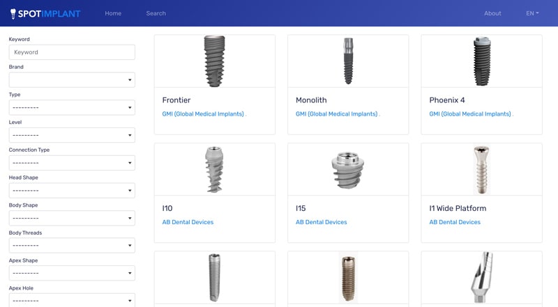 Vous pouvez également rechercher manuellement les modèles via le moteur de recherche comme sur Osseosource ou Whatimplantisthat, à la différence que :