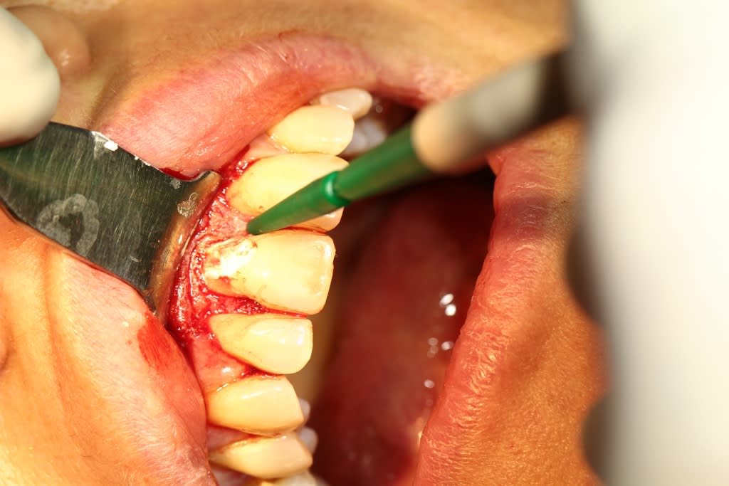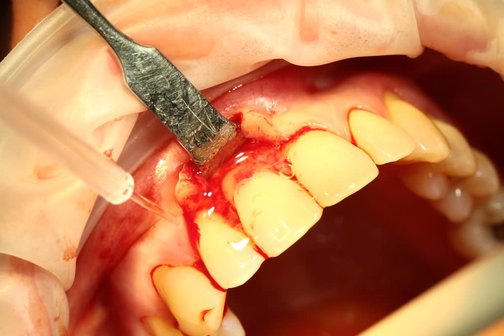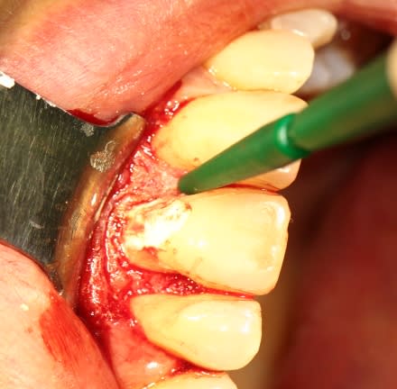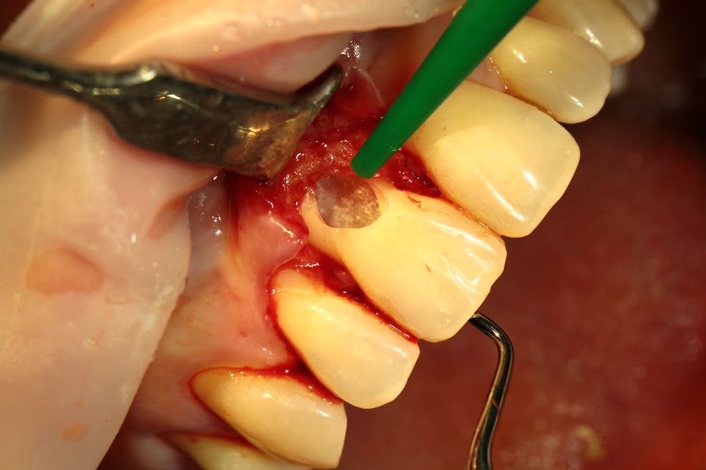 L’avantage c'est qu'il collait aux parois séchées à la compresse et était biocompatible mais je ne désirait que l'os prenne sa place