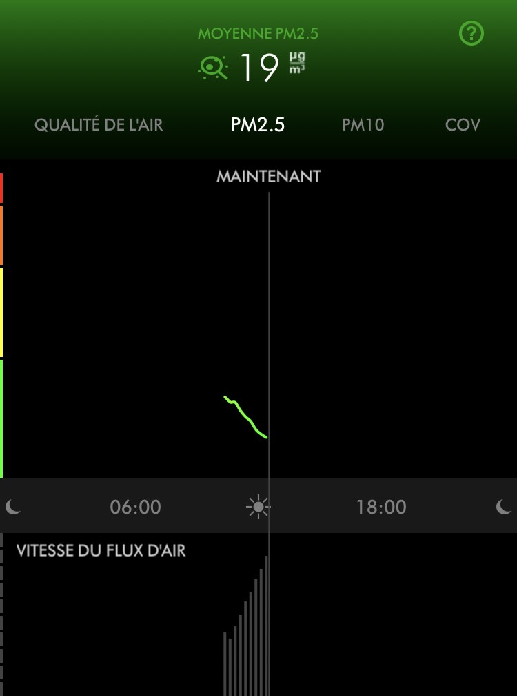 Je viens de faire fonctionner le dyson . Je regarde le niveau PM2,5 anormalement élevé... tiens ?!? Je n’ai pas allumé de feu aujourd’hui chez moi :) je regarde donc sur internet la qualité de l’air à l’extérieur dans ma zone géographique : très médiocre . Comme quoi s’agissant de la gestion des particules fines , l’appareil détecte bien et fonctionne bien. Pour info Dyson et Philips (et sans doute d’autres) filtrent les particules de 0,1 micromètre... des études ont été faites à ce sujet