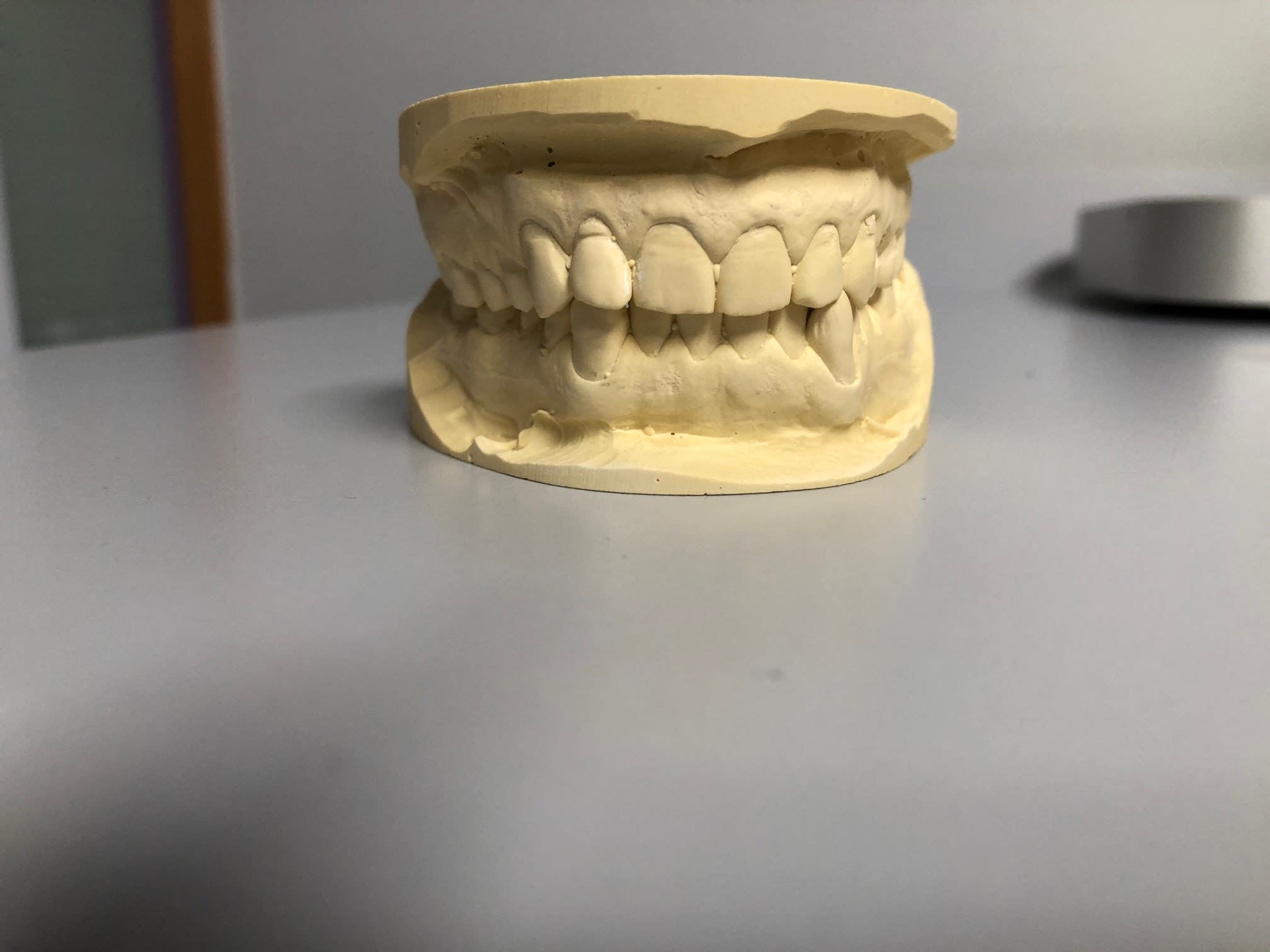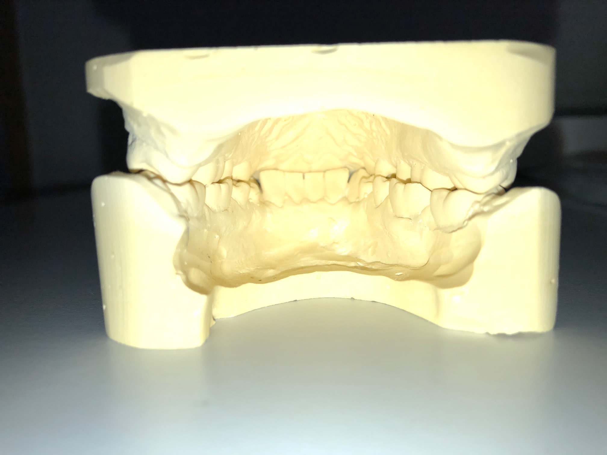 à remarquer le décalage du point inter incisif , alors que les incisives ne sont pas en éventail .