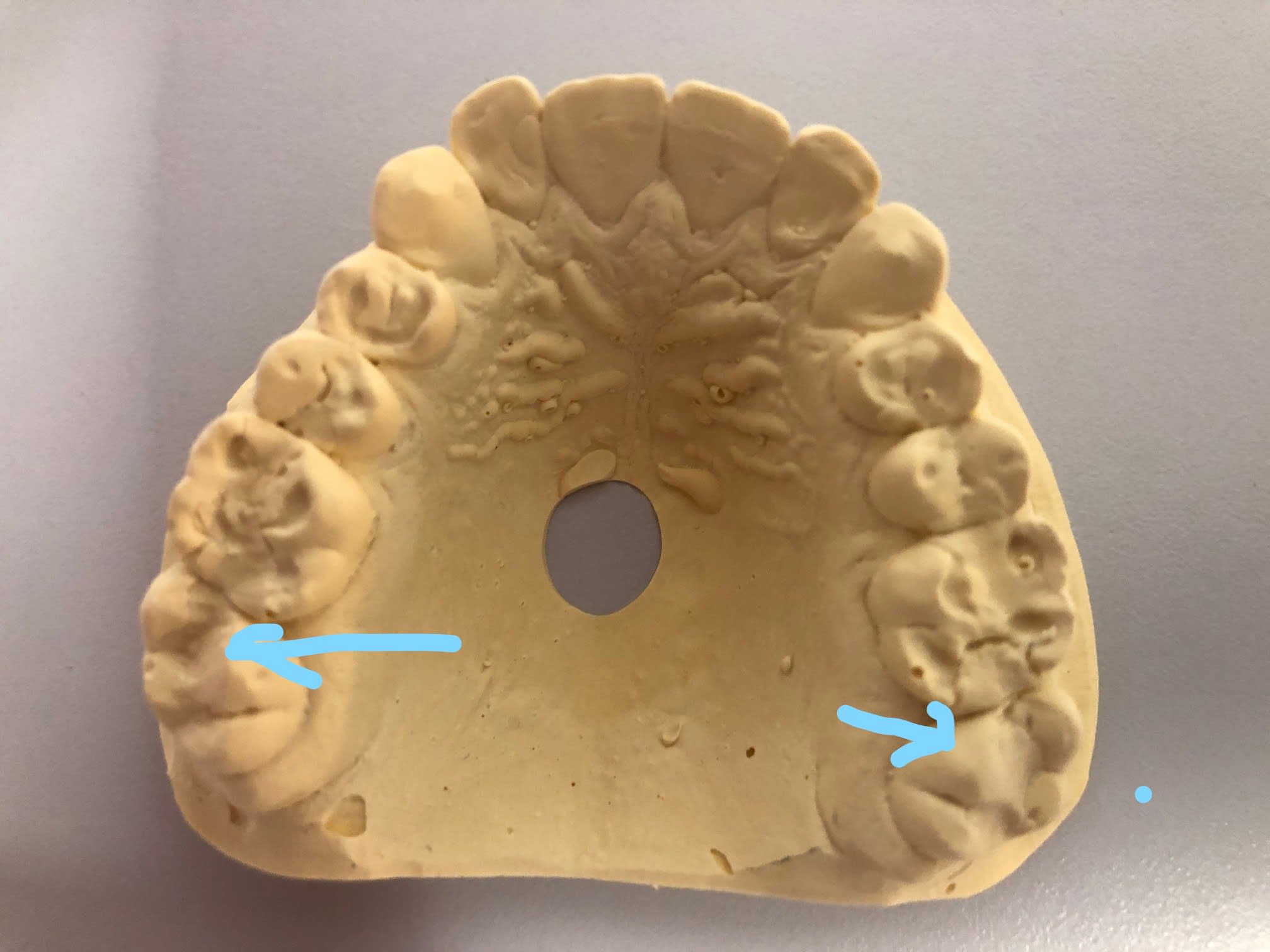 d abord les trais bleus , tu equilibres , ensuite tu remplis au compo , là où il y a des manques , et tu verras apres . le point inter incisif devrait revenir en 15 jours .