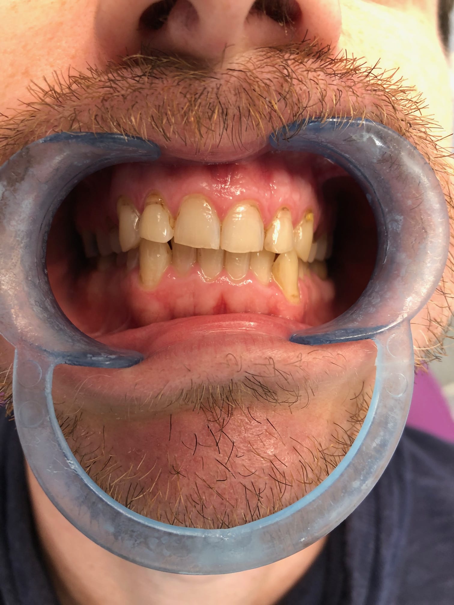 33 ans, la face P des Incisives et canines sup est érodée. Quand j'ai eu des cas d'usure prématurée , il y avait un passé de régurgitation/ remontées acides , avec un mal des transports dès l'enfance.... et les dents avaient ces abrasions: la légère déminéralisation + cycle masticatoire aboutissait à ce type d'usure.