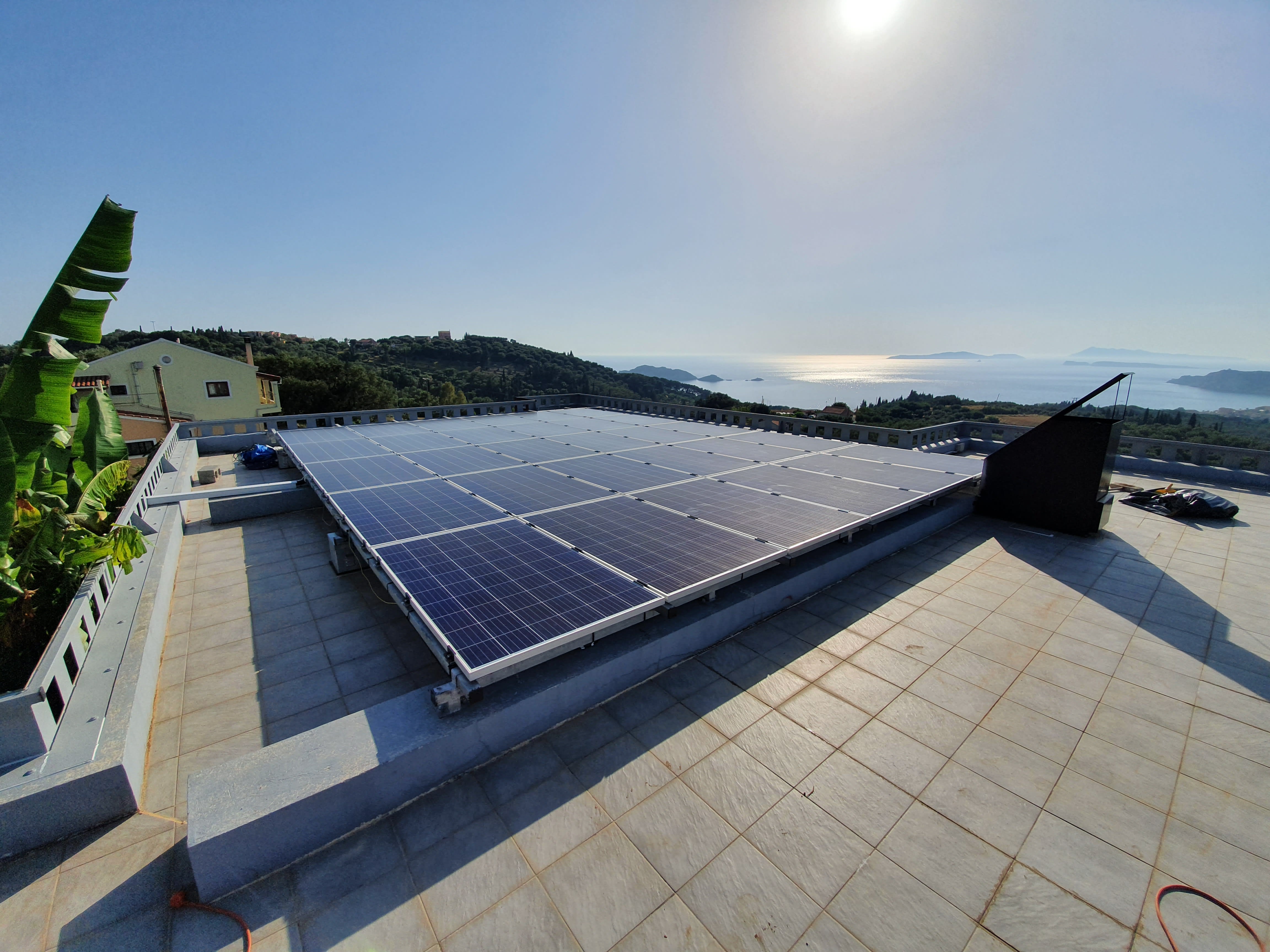Toit plat terrasse...panneaux posé à plat...(rendement -7%)...invisibles ...