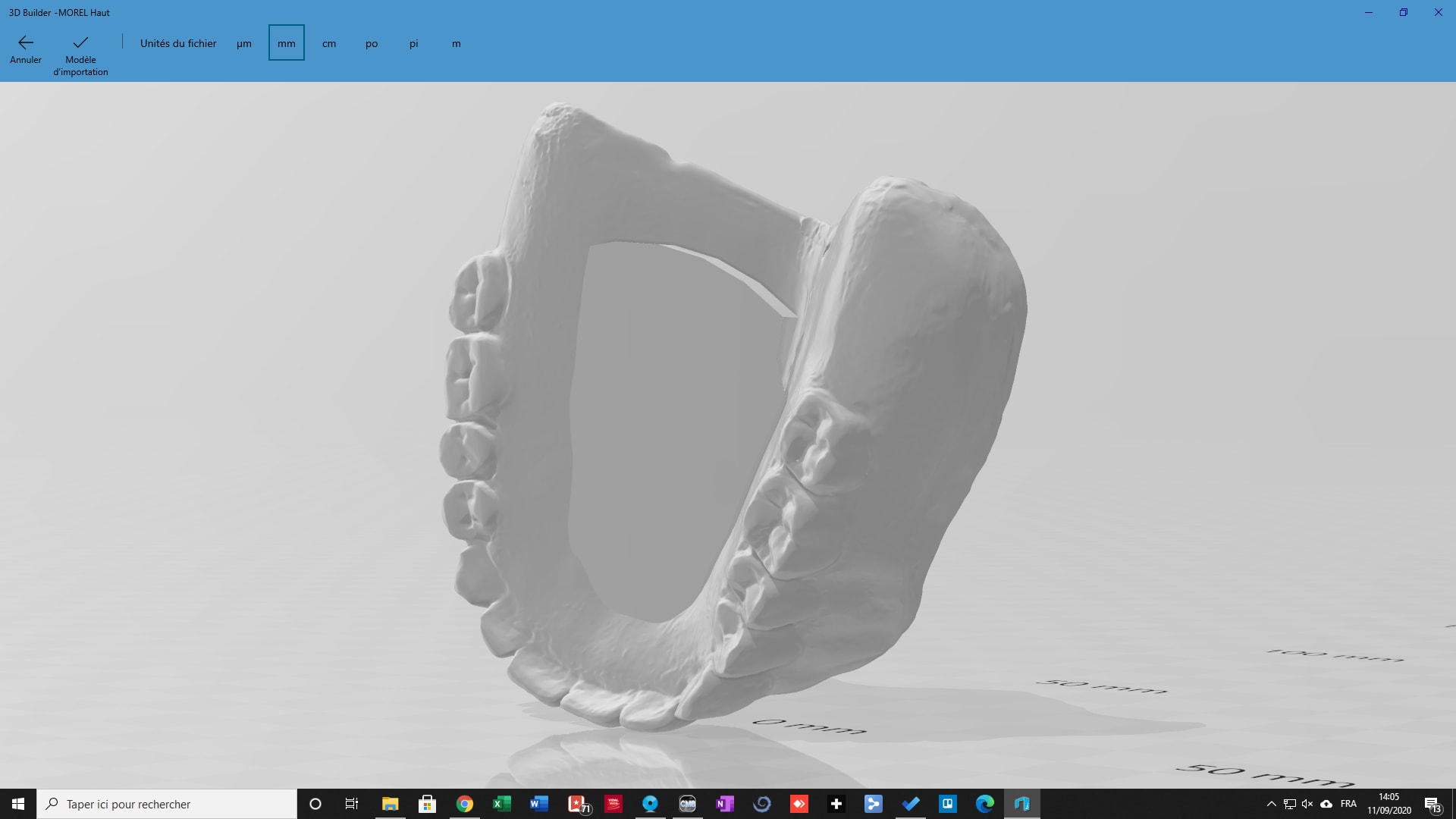 Empreinte de surfaçage de la PAC d usage puis scan puis réduction des bord prothétique dans meshlab + crans de rétention pour le produit de marginage puis impression 3d.