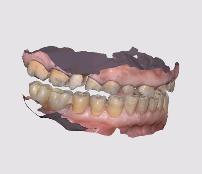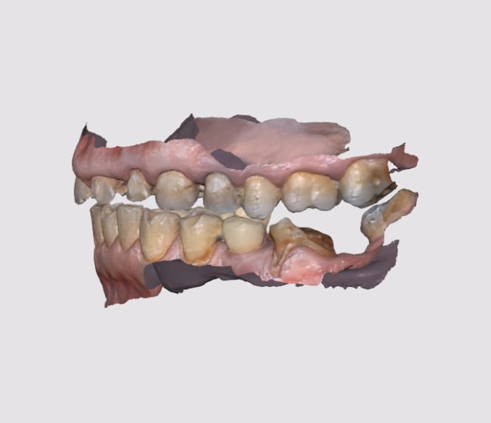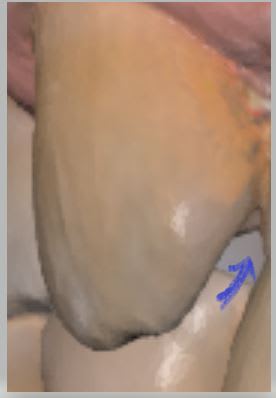 j'ai presque tout compris sauf : cette 13 qui oblige à une desocclusion extravagante en latéralité n'a pas d'usure majeure et n' a jamais eu sa place sur l'arcade (rotation14 + derive mésailante de l'usure des points de contact au fil du temps).