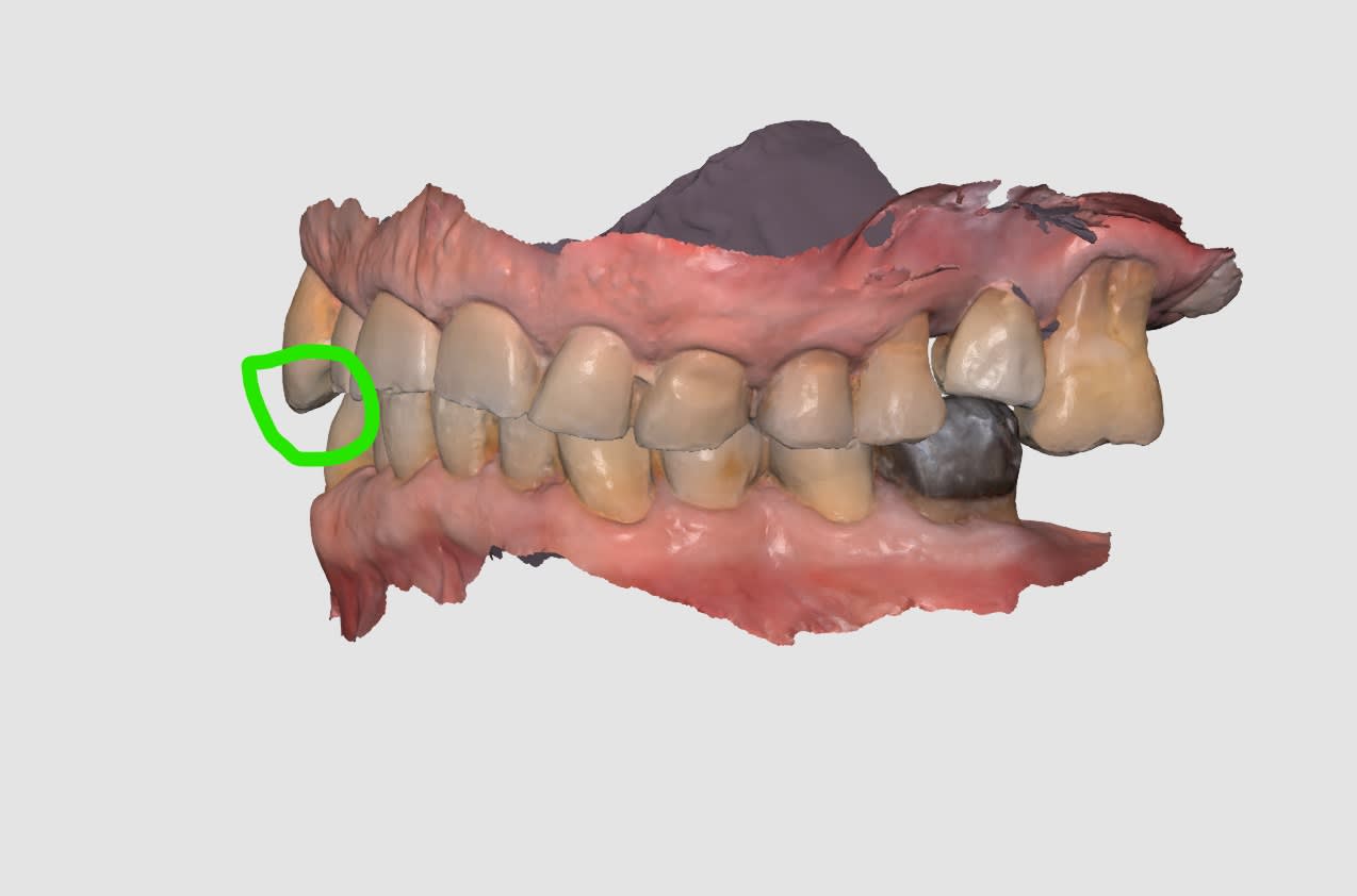 - ç est sympa pour les articulations qui sont moins esquichées , à condition que ce soit des 2 cotés , ce qui n est pas le cas ici , au vu du décalage du point inter-incisif .