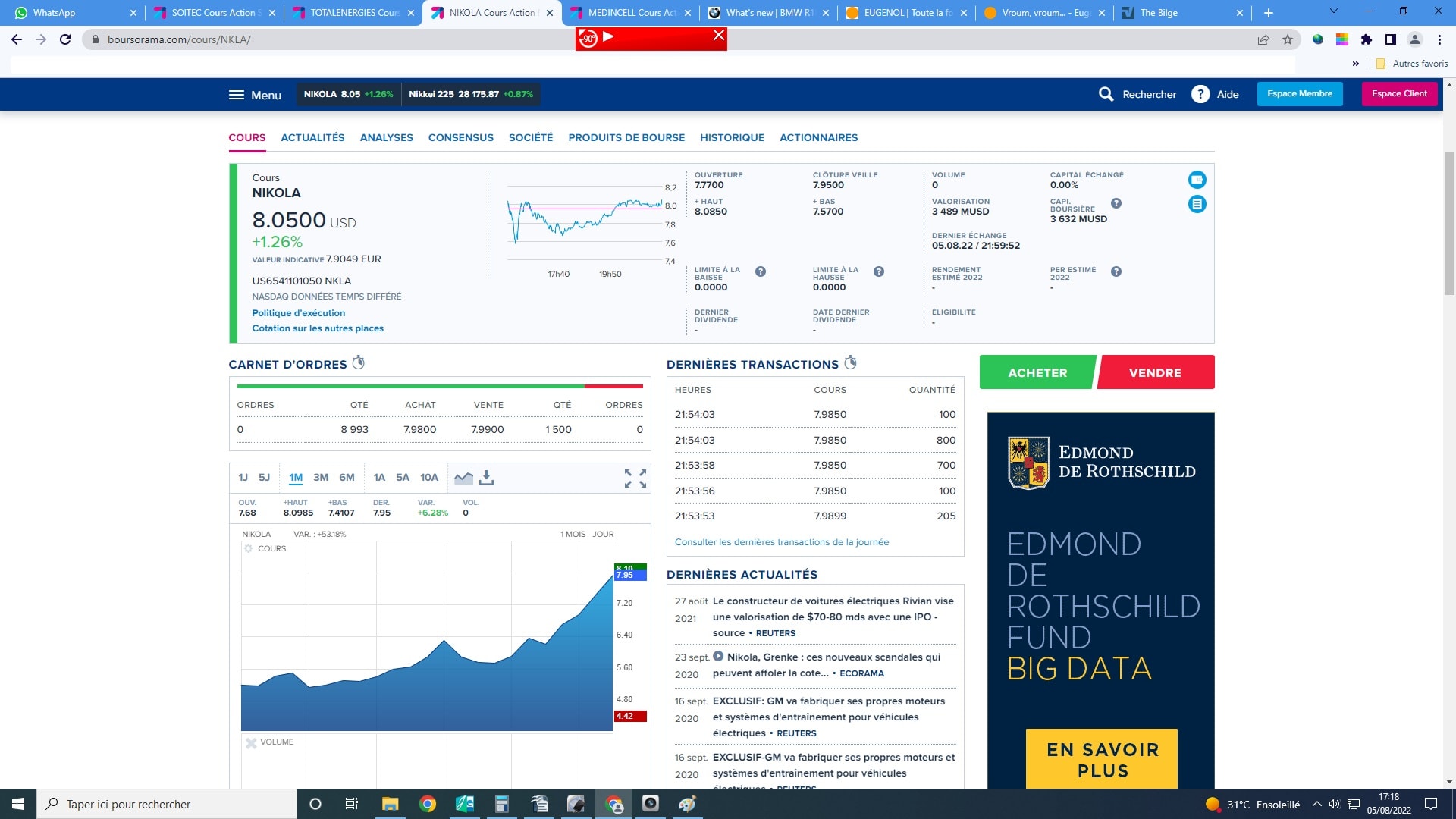 Je viens de prendre un gros paquet de Nikola à 3,83 . ..
