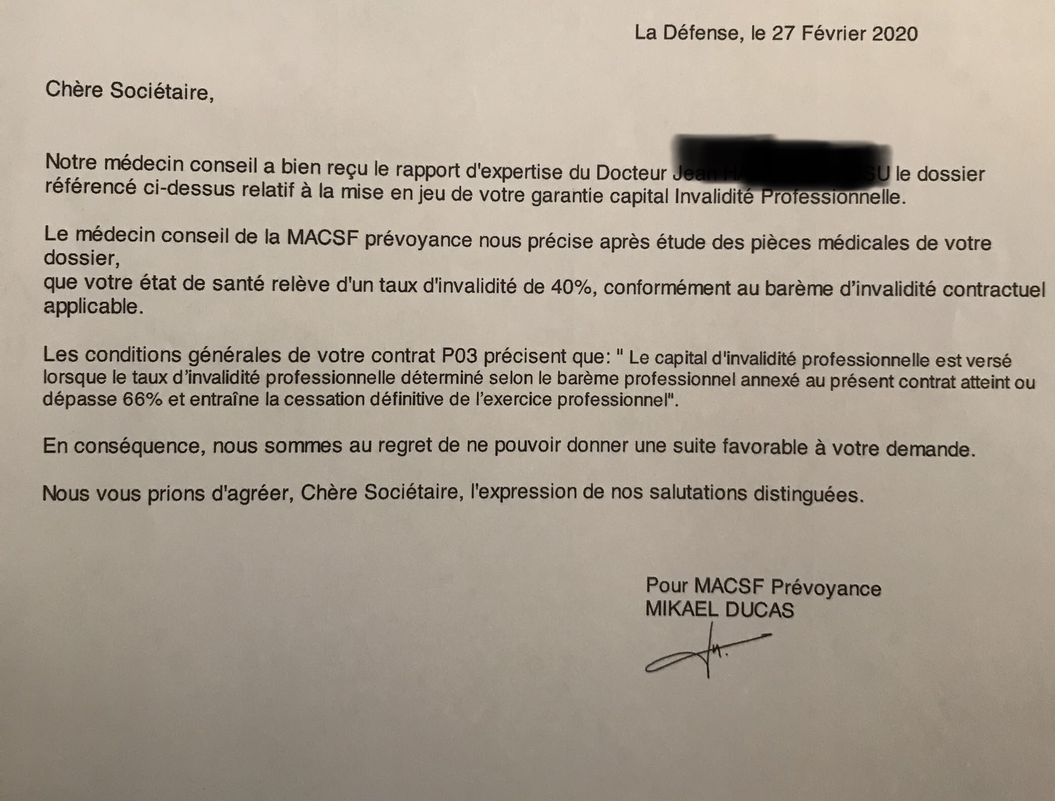 -la macsf se base pour cela sur les conclusions de l'expert qu'elle a mandaté.