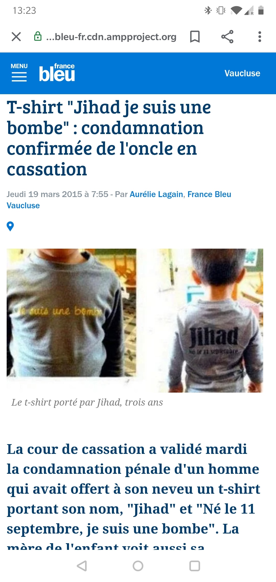 https://www-francebleu-fr.cdn.ampproject.org/v/s/www.francebleu.fr/amp/infos/faits-divers-justice/t-shirt-jihad-je-suis-une-bombe-condamnation-confirmee-de-l-oncle-en-cassation-1426748129?amp_gsa=1&_js_v=a6&usqp=mq331AQHKAFQArABIA%3D%3D#amp_tf=Source%C2%A0%3A%20%251%24s&aoh=16026745483863&referrer=https%3A%2F%2Fwww.google.com&share=https%3A%2F%2Fwww.francebleu.fr%2Finfos%2Ffaits-divers-justice%2Ft-shirt-jihad-je-suis-une-bombe-condamnation-confirmee-de-l-oncle-en-cassation-1426748129