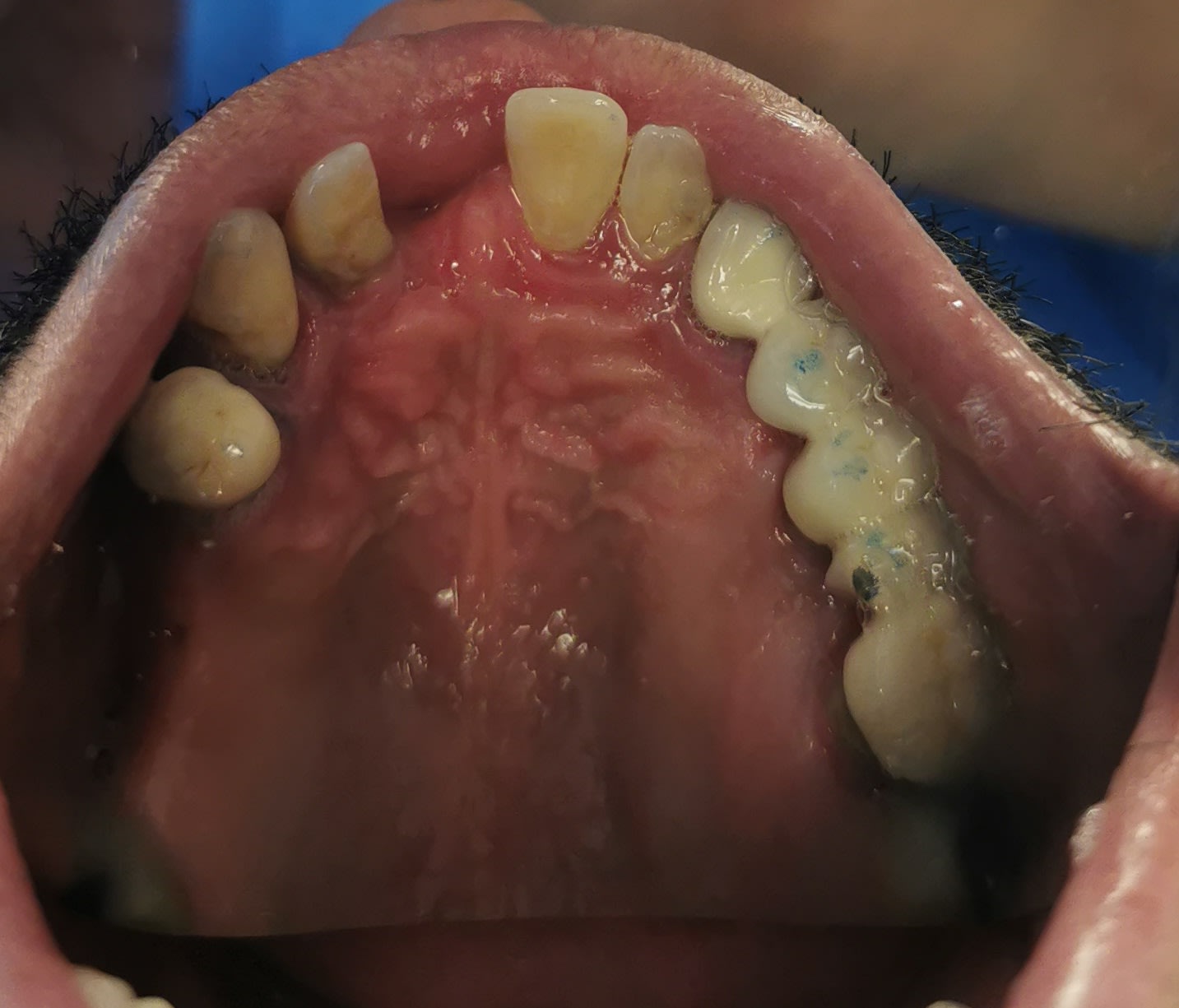-Plus assez de dents conservables en haut, vu les avantages du complet par rapport au partiel au maxillaire, c'est la prothèse totale.