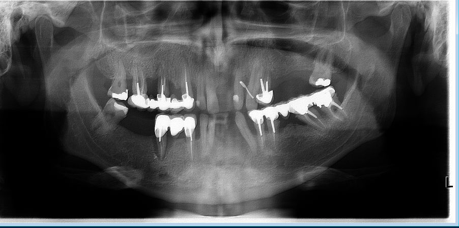 -Dents à voir au cas par cas à la mandibule, avec soit conservation uniquement des dents vraiment bien (peut être des bridges/couronnes à reprendre) et prothèse métal (si le patient te semble stable niveau paro). Soit partiel résine en gardant un max de dents et en rajoutant dessus petit à petit si tu crains que tout lâche au fur et à mesure.