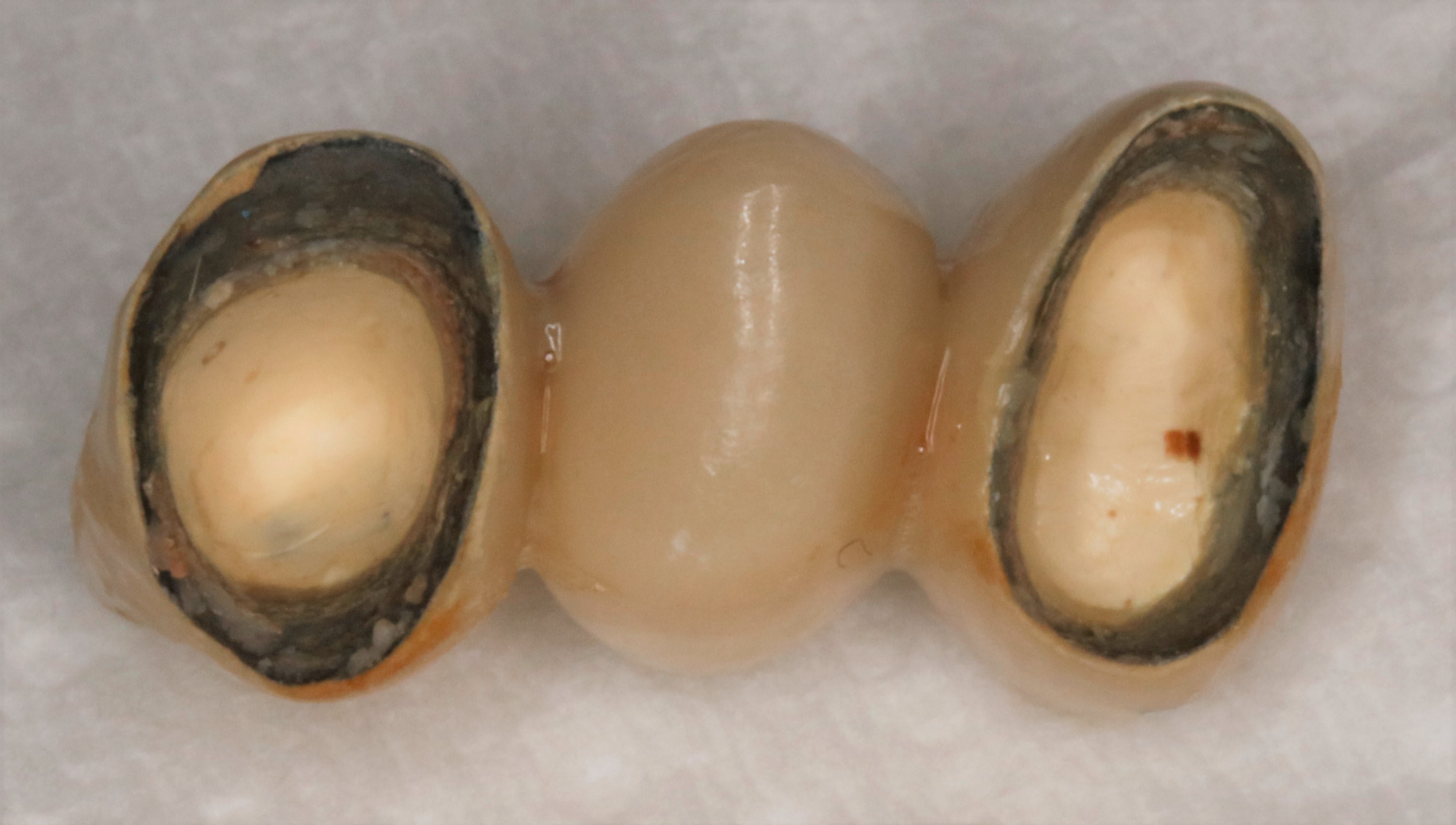 un bridge canine - prémo sellé au temp bond , ça tient 7 ans pas plus :-)
