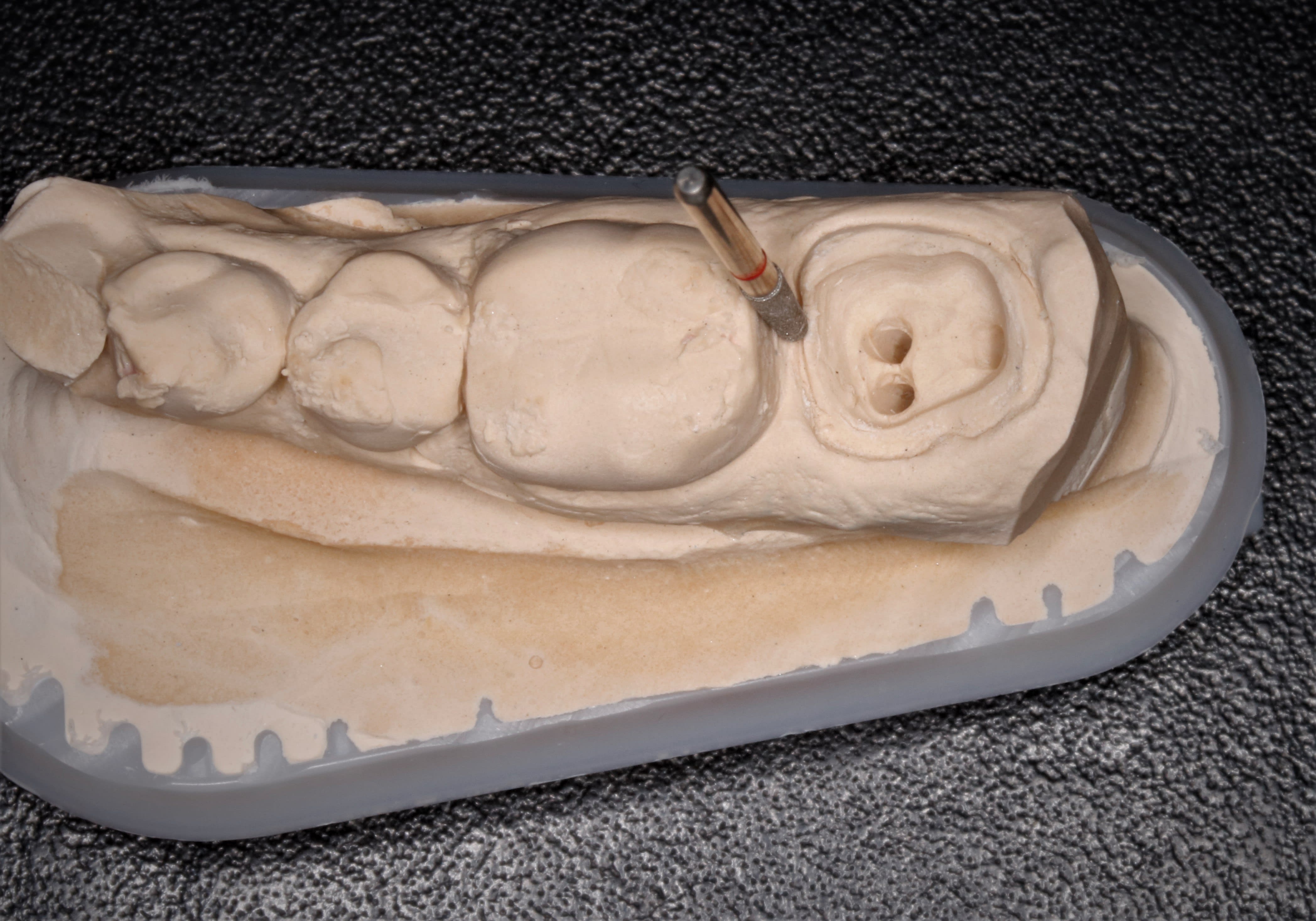 D'autant plus qu'ils mettent un spacer sur le die pour que la couronne rentre justement à fond. Ils préfèrent gratter les dents adjacentes en plâtre et surdimensionner au niveau des points de contact plutôt que l'inverse, pour être sûr que le praticien ne retourne pas la couronne. Il vaut mieux plus que pas assez.
